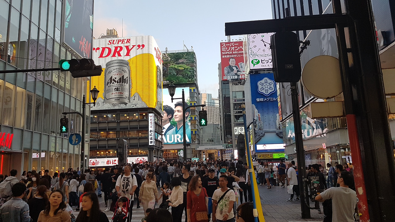 패키지 여행은 왠만해서는 쇼핑센터가 있는 곳에는 가지 않습니다. 그렇지만, 오사카 시내 중심가에 위치한 도톤보리(유명한 상인의 이름을 따서 지어진 먹자골목이라고 보시면 됩니다)와 쇼핑 거리로 유명한 신사이바시는 안갈 수가 없는 곳이죠. 일본에서는 "고베는 신다가 망하고(하키다오게), 오사카는 먹다가 망하고(쿠이다오레), 교토는 입다가 망한다(기다오레)."라는 말이 전해진다고 해요. 그 먹자 골목이 바로 도톤보리죠. 역시나 내리자마자 발디딜 틈이 보이지를 않습니다. 가이드가 들고 있는 깃발조차 보이지 않을 때가 있을 정도였고, 주변에는 한국어와 중국어 밖에 들리지 않습니다.
