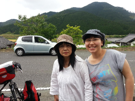 마사코 미요시와 미요시 에미코 모녀. 만화에 나올 것 같은 케릭터였다. 과장된 표정과 행동이 무척 활달한 모녀. "이쪽으로는 길이 없어요. 돌아가 주세요." 아예 차에서 내려서 똑같은 말을 계속 반복했다. 마쓰야마 자동차도로 옆으로 난 소로를 따라 오주시로 이어져 있는 줄 알았는데 중간에 길이 끊긴다는 것이다. 이들과 잠시 수다를 떨었다,