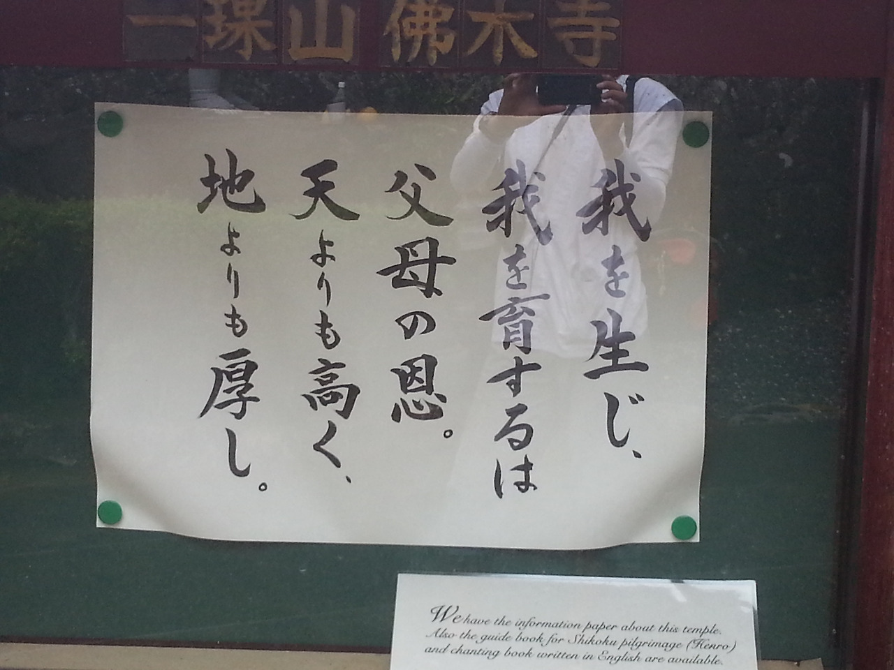 절 입구 게시판에 “나를 낳고 기른 것은 부모의 은혜. 하늘보다 높고 땅보다 두터운" 이런 글이 붙어 있었다.