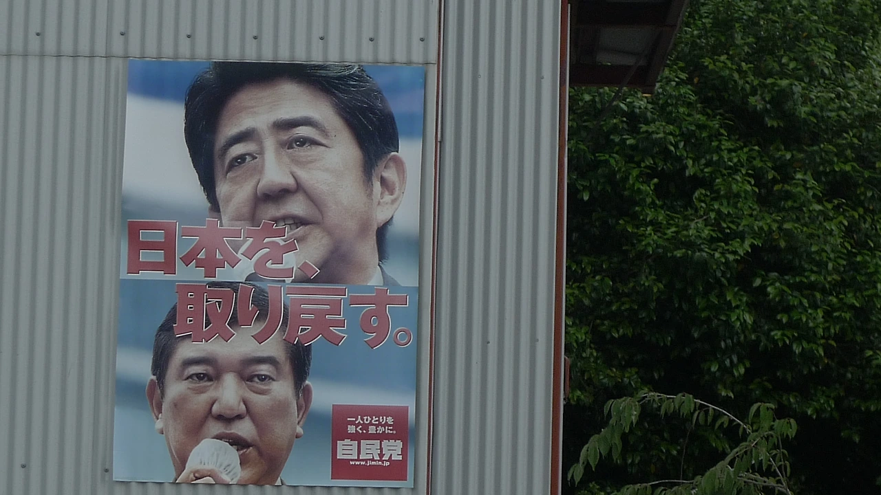 일본은 그 무렵 총선을 앞두고 있었다. 일본 공산당은 ‘즉시 원자력발전 제로' 등 탈핵과 증세반대 등의 구호를 내걸고 있었다. 집권당인 자민당은 다분히 선동적이었다. "일본을 다시 강하게!" 이 지역에서부터 일본을 재건(재생)하자! 이런 식이다. 아베와 지역 의원후보의 얼굴을 극적으로 클로즈업 한 뒤 굵은 눈물을 흘리는 사진은 묘하게 호소력이 있다.
