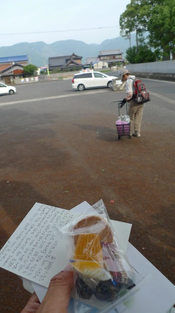 본당 앞에서 향을 사르고 반야심경을 독송한 뒤돌아서니 한 할머니가 무릎을 꿇고 간절하게 기도를 하고 있었다. 할머니는 기도를 마친 뒤 법당 주변을 청소한 뒤 절 앞 벤치에 앉아 가족들에게 엽서를 쓰고 있는 내게 와 오셋타이라며 작은 꾸러미를 건네고 총총 돌아서서 걸어간다. 달콤한 젤리와 비스킷과 사탕 몇 알. 순례자들을 만날 때마다 나누려고 이렇게 준비하고 다니시는 모양이다.