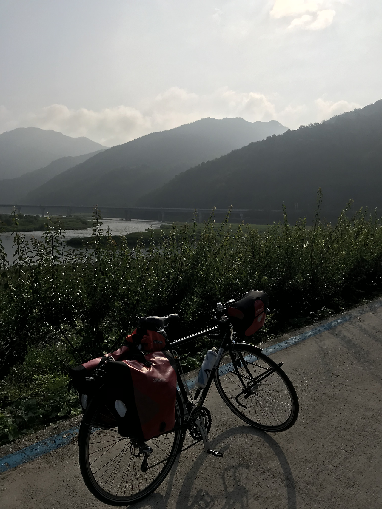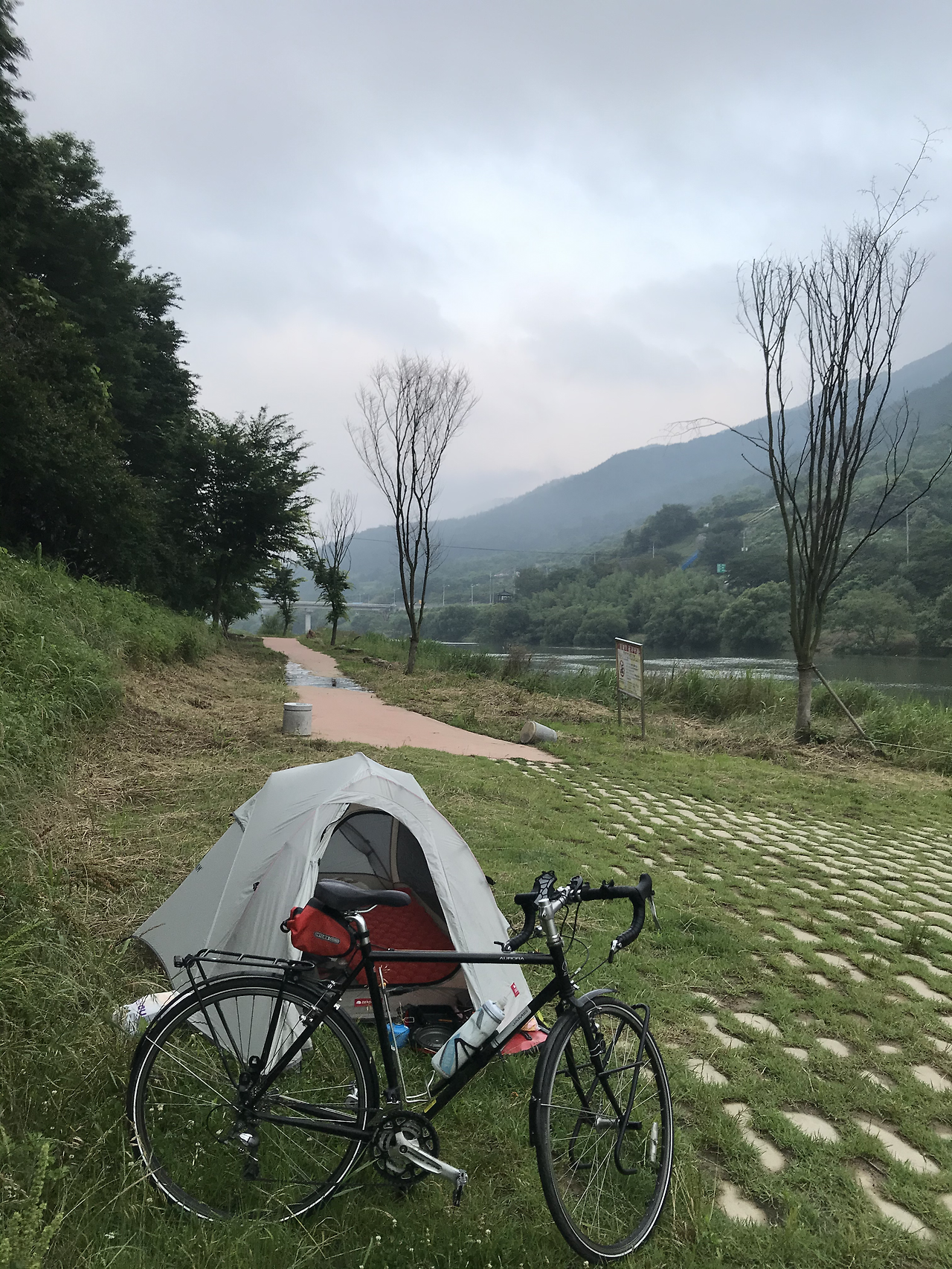 70km 가량 달려 곡성 압록 유원지에서 강변 야영을 했다. 시코쿠 이후로 자전거 야영은 처음이었다.