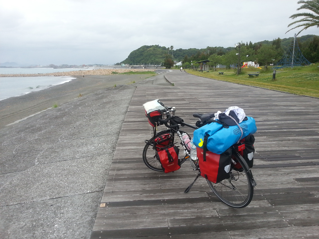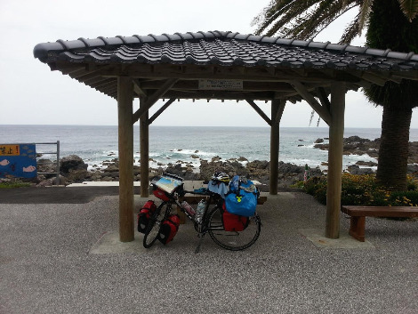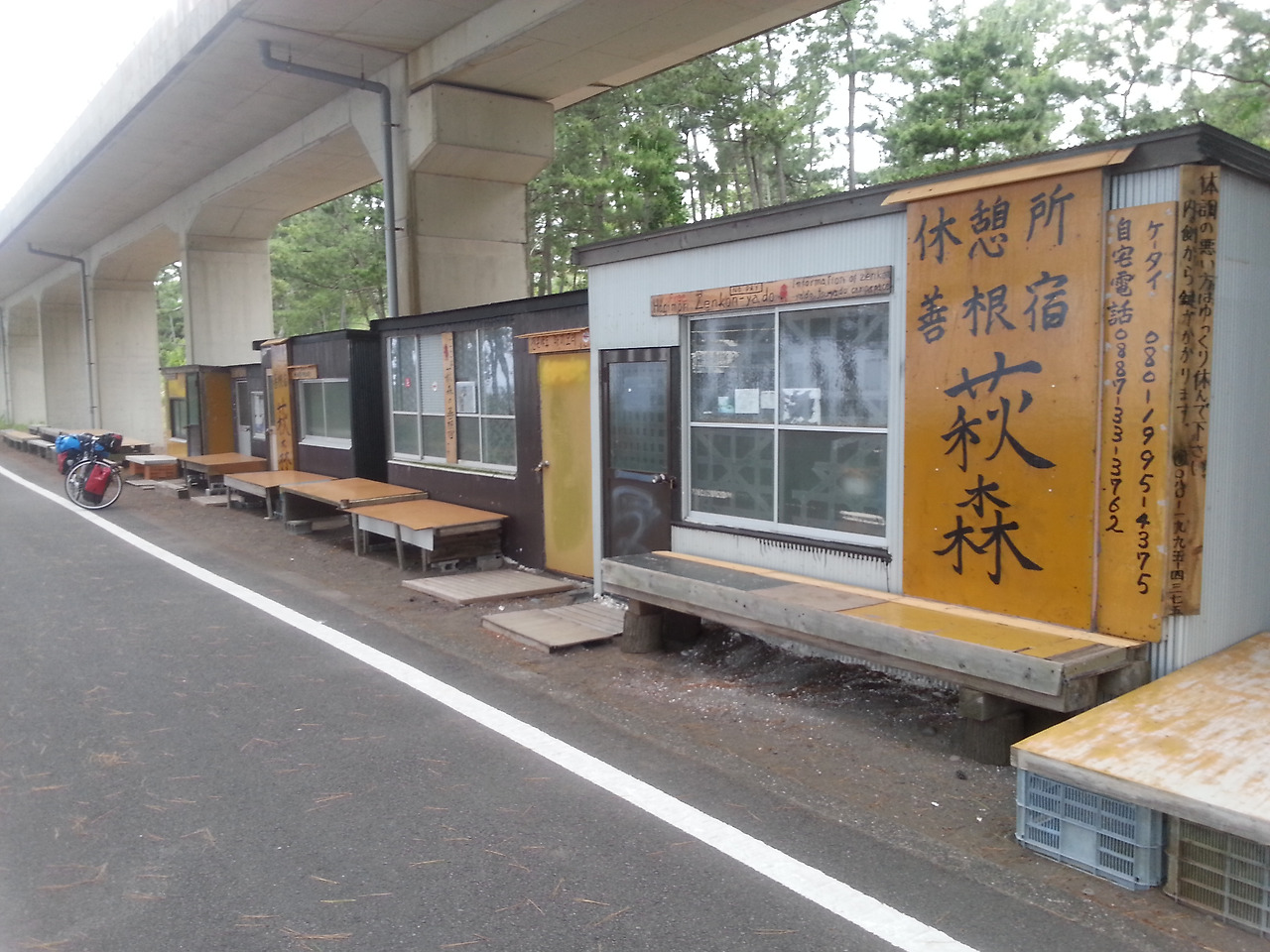 미치노에키에서 다른 순례자들처럼 노숙을 해보자 싶어 가보았다. 그러나 고속도로 휴게소처럼 자동차들이 수시로 들락거리는 그곳에서 편히 자기도 불가능할 것 같았다. 막막한 심정으로 해변으로 들어가 보았다. 해변을 따라 나무 데크가 깔려 있었다. 아무 생각 없이 자전거 라이트를 켠 채 해변길을 달리다 보니 곳곳에 한 몸처럼 끌어안고 있던 아베크족들이 화들짝 놀라는 모습이 보인다. 바로 라이트를 끄고 해변 공중 화장실 가까이 바닷가에 텐트를 쳤다. 취사장인지 간단한 비가림 지붕도 있어 맞춤하다 싶었다. 비가 온다는 예보도 있었다. 야영이 허용된 곳인지도 알 길이 없었다. 이젠 아무래도 상관없다 싶었다.