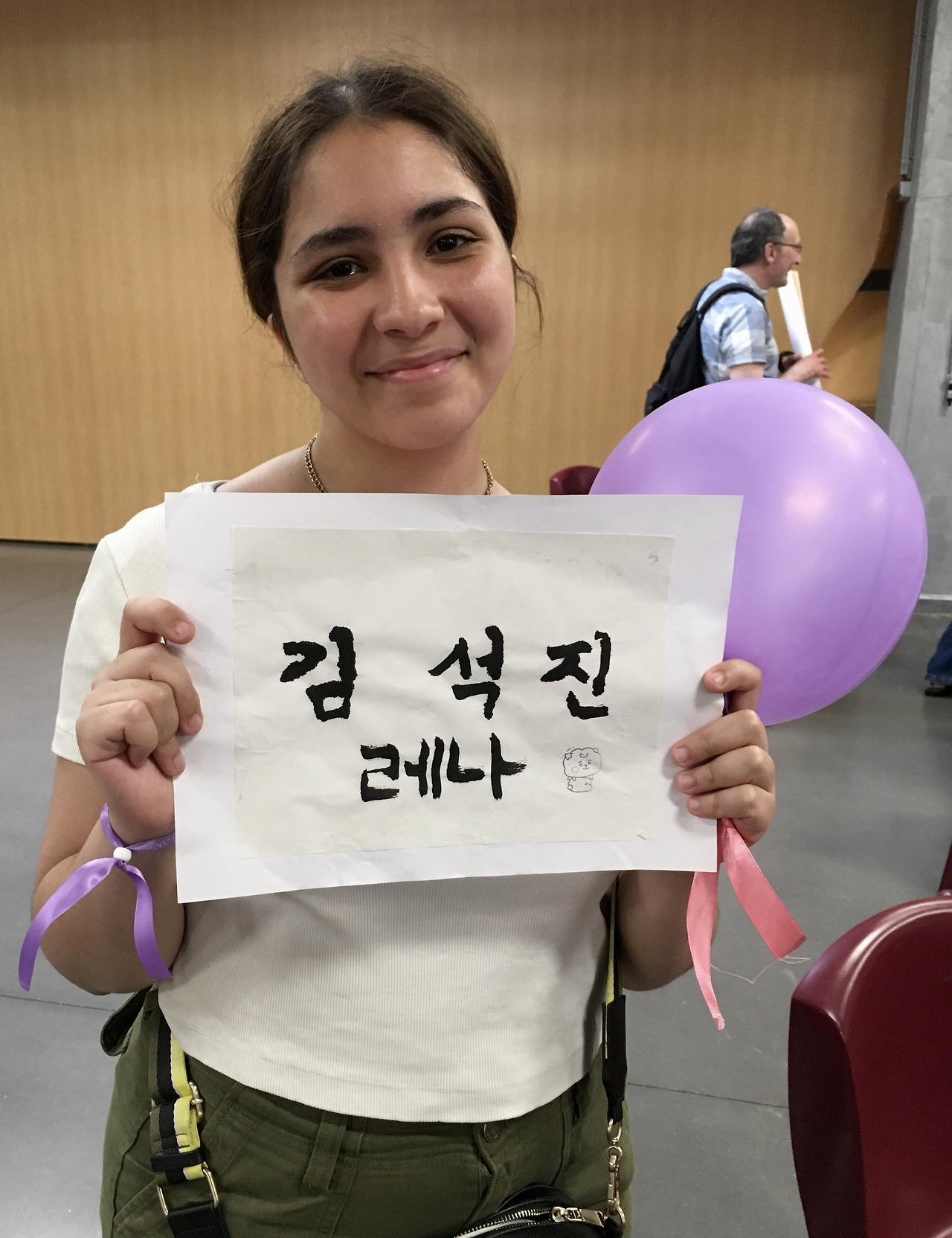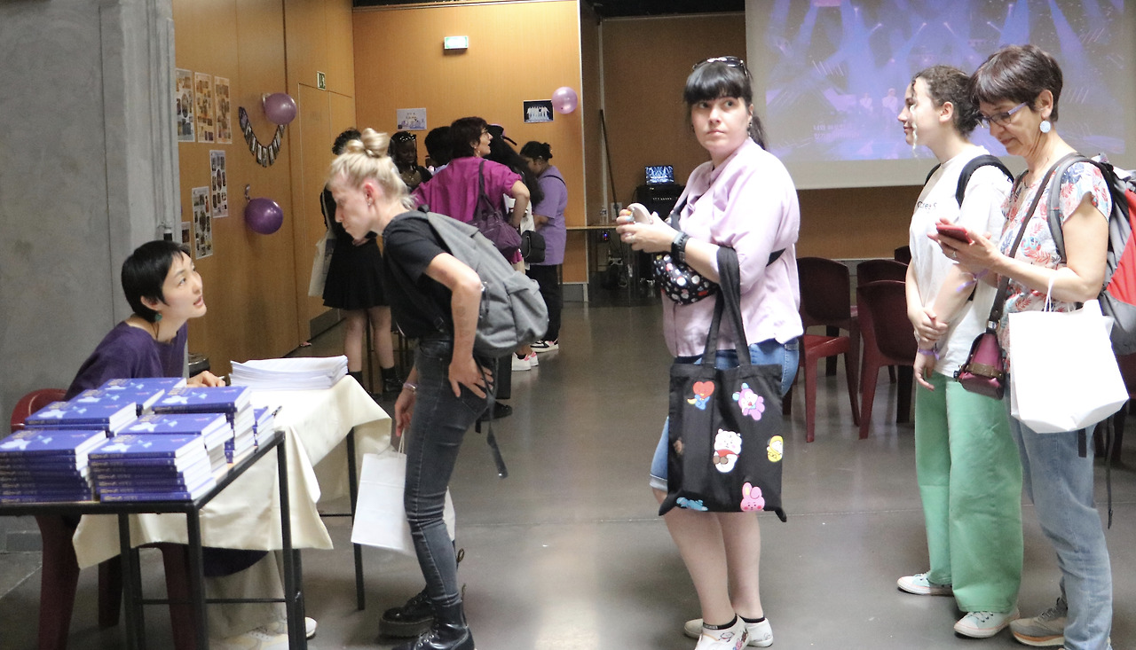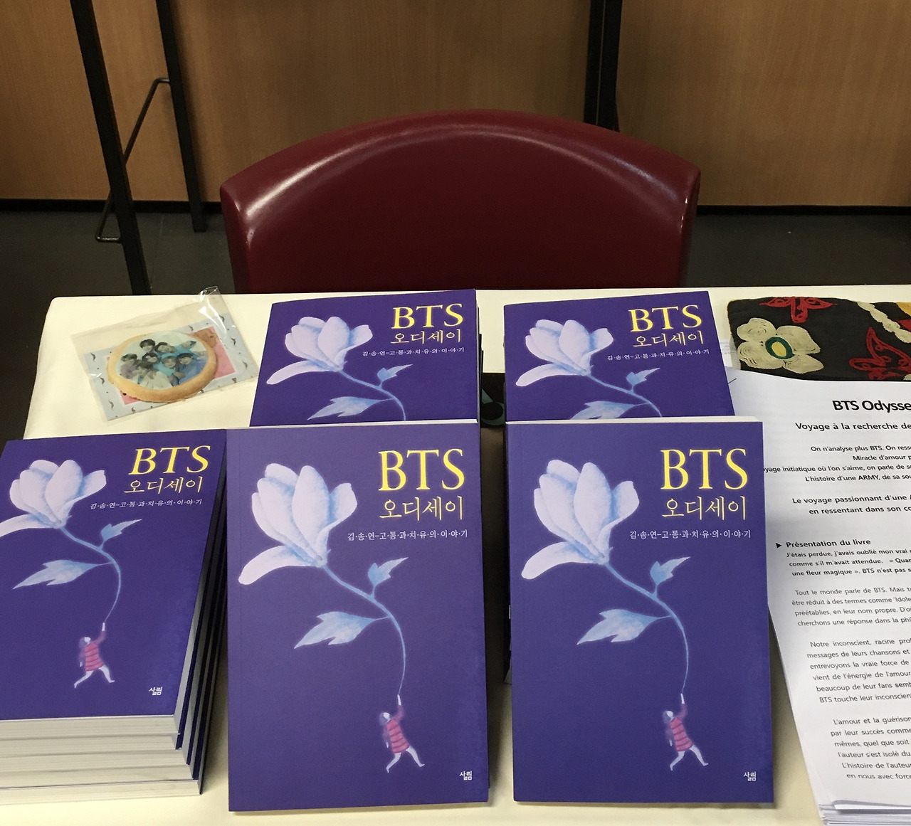더 재밌는 얘기 들려드릴게요. 지난 6월 프랑스 BTS 팬클럽이 준비하고 Paris에서 열린 BTS 10주년 생일파티에 작가로 초대받아 다녀왔답니다. 한국에서도 한 적 없는 '작가와의 문답'을 무대에 올라 프랑스 독자들 앞에서 간단히 하기도 했고, 사인회도 마련해주어 했어요. 프랑스 팬들이 한국어로 된 제 책을 사가기도 했고요. 책 소개와 책 속 글들 5개를 프랑스어로 통번역한 자료를 가져갔지요. 사인은 한국어로 해주었어요. "릴루에게, 아름다운 오늘 반가워요, 보라해요" 모두들 너무나 좋아했답니다!
