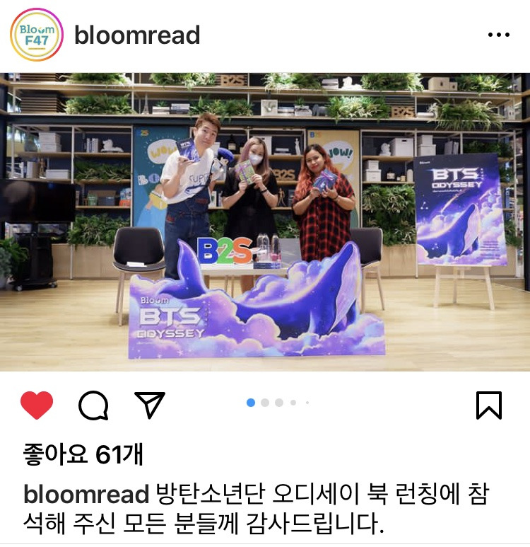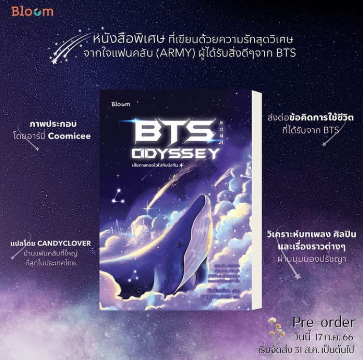그 전에 그간 있었던 작은 소식들 전해드려요. 얼마 전 태국에서 제 책 <BTS 오디세이>가 출간되었답니다. 태국 아미들이 작가에게 많이 고마워하고 있다고 해요. 번역을 하신 분도 번역을 하며 매우 행복했다고 하고요. 아미인 출판사 편집자도 제 책을 통해 정신적으로 큰 위로를 받았고 BTS를 더 깊이 이해할 수 있게 되었다고 인스타 DM을 주셨어요. 참 감사한 일이죠. 책 표지에 보라색 고래가 날아오르고 있어 얼마나 예쁜지 모릅니다. 지금 태국에서 책이 날아오고 있다고 해요. 제게 보내주려고요.