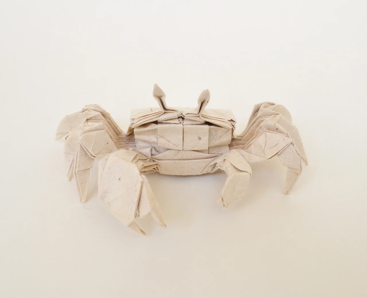 누군가 봤을 때 '아! 이건 게다!'라고 느낄 수 있는 게의 특징은 아마도 1쌍의 집게발과 나머지 4쌍의 다리일 것이다. 정사각형의 종이는 4개의 꼭짓점을 가지며, 종이접기에선 대개 어딘가의 말단부가 된다. 즉, 4개의 돌출부로 10개의 게 다리를 표현해야 한다. 아무리 생각해도 모자라지 않은가? 그럼 2개를 집게발에 주고 나머지 다리는 4개씩 합치면 된다. 그럼 대략 게 모양은 된다.