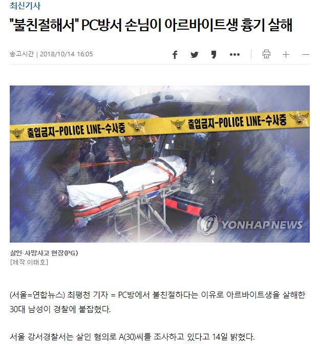 그런데 왜 기사의 헤드라인은 가해자의 입장을 대변할까. 특히나 몇몇 기자들은 왜 항상 가해자 입장에서 살인과 폭력에 그럴만한 이유를 덧 씌워주는가. 그리고 종업원이 불친절한 게 죽을만한 이유가 될까.