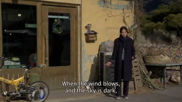 이 단상들은 영화의 서사와 무관하게 돌출적이며 인물의 감정 선을 섣불리 판단할 수 없는 하나의 장막처럼 여기도록 기능한다. 예컨대 앞서 말한 예들 중 <밤의 해변에서 혼자> 속 김민희의 표정이 대표적이다. 이 장면을 담고 있는 카메라 형식은 특히 주목할 만하다. 담배를 피우기 시작한 김민희를 카메라가 줌인 하는데, 홍상수의 영화에서 이 형식이 발현되는 순간은 포착하고 있는 대상과 밀착하려는 최초의 시도처럼 보이면서 끝내 그 대상과 절대적으로 좁혀질 수 없는 거리가 있음을 깨닫는 시간이기 때문이다. 영화의 서사와 깊게 연관되지 않는 이 장면을 본 우리는 김민희가 왜 노래를 부르는지 그 이유를 하나의 언어로 미쳐 설명할 수 없다. 빗댈 수 있다면 그 순간 그가 부르는 노래의 운율과 피어오르는 담배연기가 가진 어떤 운동성, 그리고 슬픈 가사를 흥얼거리면서도 무표정한 김민희의 얼굴이 고요하면서도 그 장면에 생기를 불어넣는다고밖에 설명할 수 없을 것이다.
