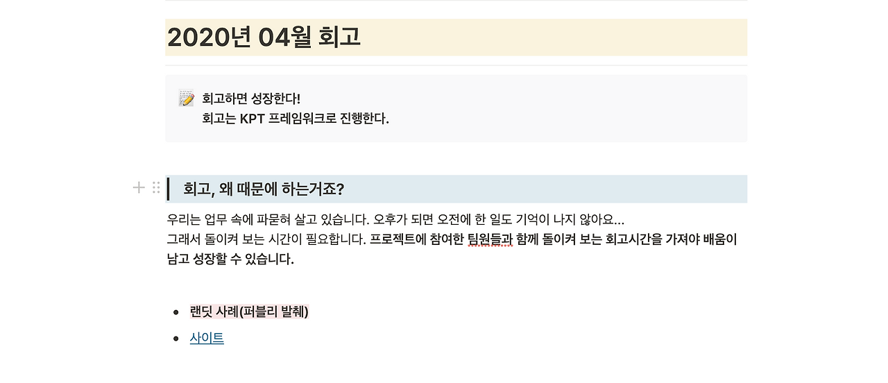 노션으로 진행한 4월 회고 도입