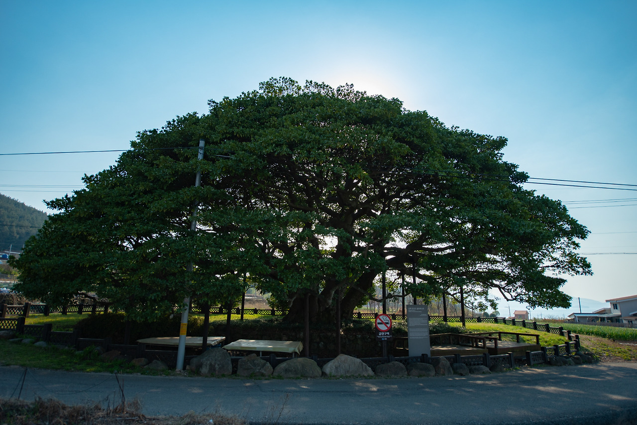 남해 바닷가와 인접한 넓은 평야쪽에 위치해있는 왕후박나무는 보호수를 찾으러 다니기 시작한 후 처음 만난 천연기념물이었다. 천연기념물은 일반 보호수와 뭐가 다를까 싶었는데, 스케일 자체가 다르다는 걸 알게 되었다. 왜 천연기념물로 지정되었는지 알수 있을 만큼. 왕후박나무 앞에 도착하는 순간, 엄청난 아름다움을 경험하게 되었다. 수형도, 모양도, 크기도 너무나도 아름다운 모습이었다. 우리나라에 왕후박나무는 이 나무 한그루가 전부라고 한다. 그만큼 더욱 가치가 있다는 것.