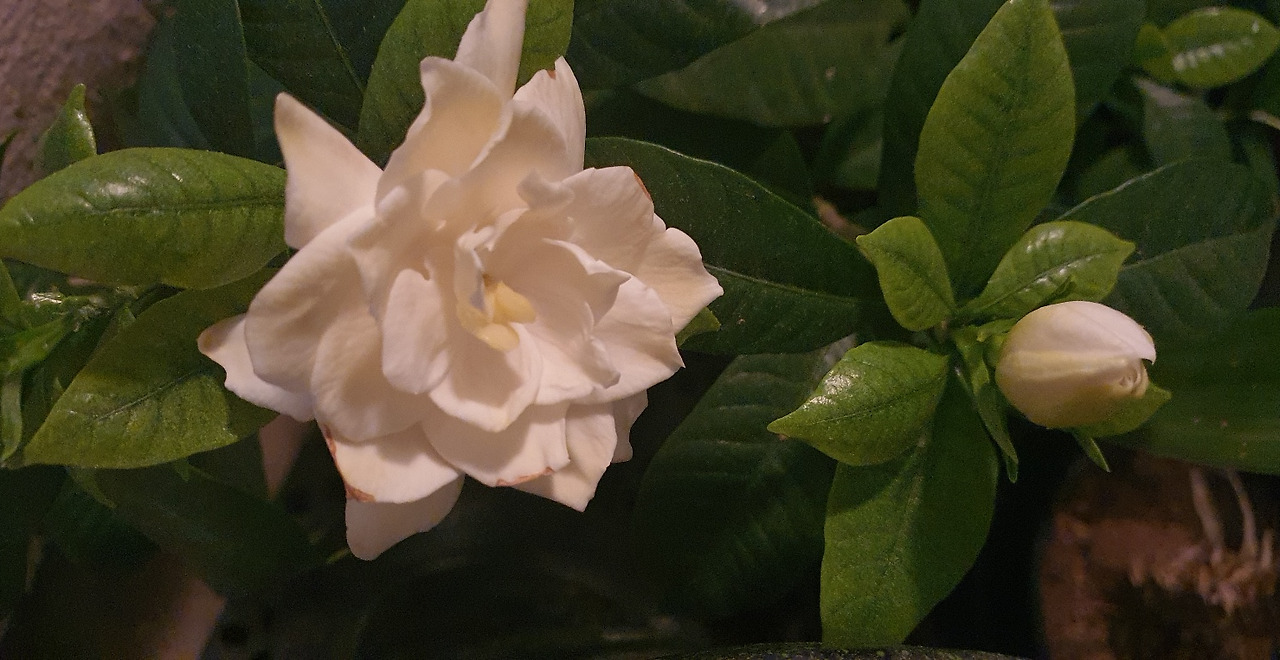 드디어 한송이 폈다. 오래도록 봉오리를 맺고 애를 태우더니 드디어 첫 번째가 봉우리를 뚫고 하얗게 활짝 폈다. 치자 꽃은 유난히 향기가 좋아 저절로 향기를 따라서 얼굴을 돌리게 된다. 우선 한송이만 피었을 뿐인데 저녁 어스름해지면 더욱 향기에 끌려 하얀 꽃송이에 얼굴까지밖고 코를 들이대게 된다. 점차 차례로 계속 피어날 텐데 한동안은 그 향기가 온 실내를 휘감겠지. 그날처럼.