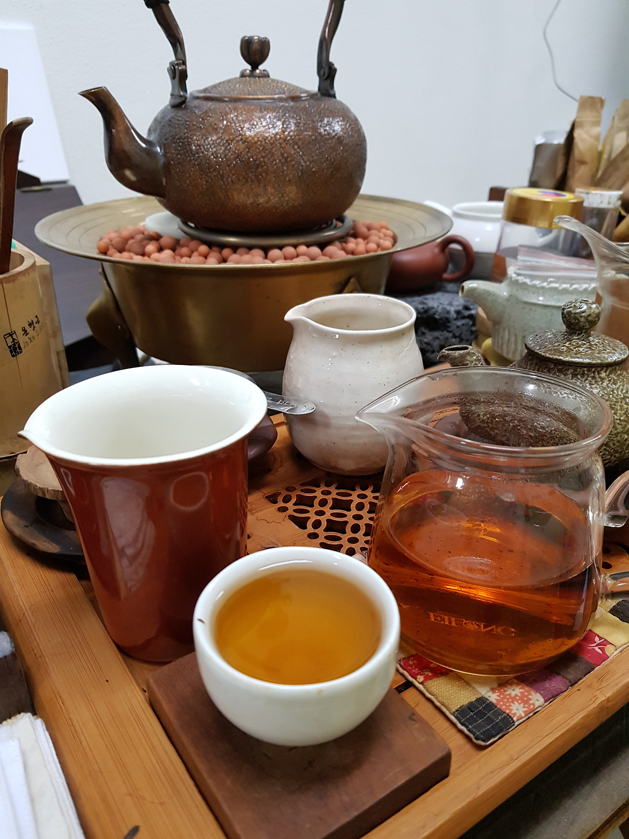 차가웁다. 물 올려 훈기를 채운다. 휴일 이후 비웠던 연구실은 늘 냉랭하다. 혼자 마시는 차로 고뿔차를 잡았다. 차에 대한 선호에 변화가 없다. 진화도 발전도 아닌 더딘 사귐이다. 익숙한 고뿔차의 아랫목같이 따스한 여운은 오히려 차맛을 깊게 한다. 목넘김의 바디감도 묵직하여 목덜미에서 꿀꺽하고 소리를 낸다. 조금만 차호에 오래두어도 홍차 가까운 색감으로 의젓하다. 꿀꺽 꿀꺽 하면서 입안에 머금다가 넘긴다. 호흡까지 함께 어울려 일체감으로 소통한다. 가히 서로를 관여하며 서로를 외면한 척 빛내고 낮추며 예술이다. 혼자의 찻자리에서 즐길만한 덕목이라더니 꼭 그대로다. 세상 그 무엇과도 바꿀 수 없는 진진한 미학이 들어있어 꿈틀댄다. 찻자리에서 우주와 내 몸이 서로 건드린다. 작용이다.