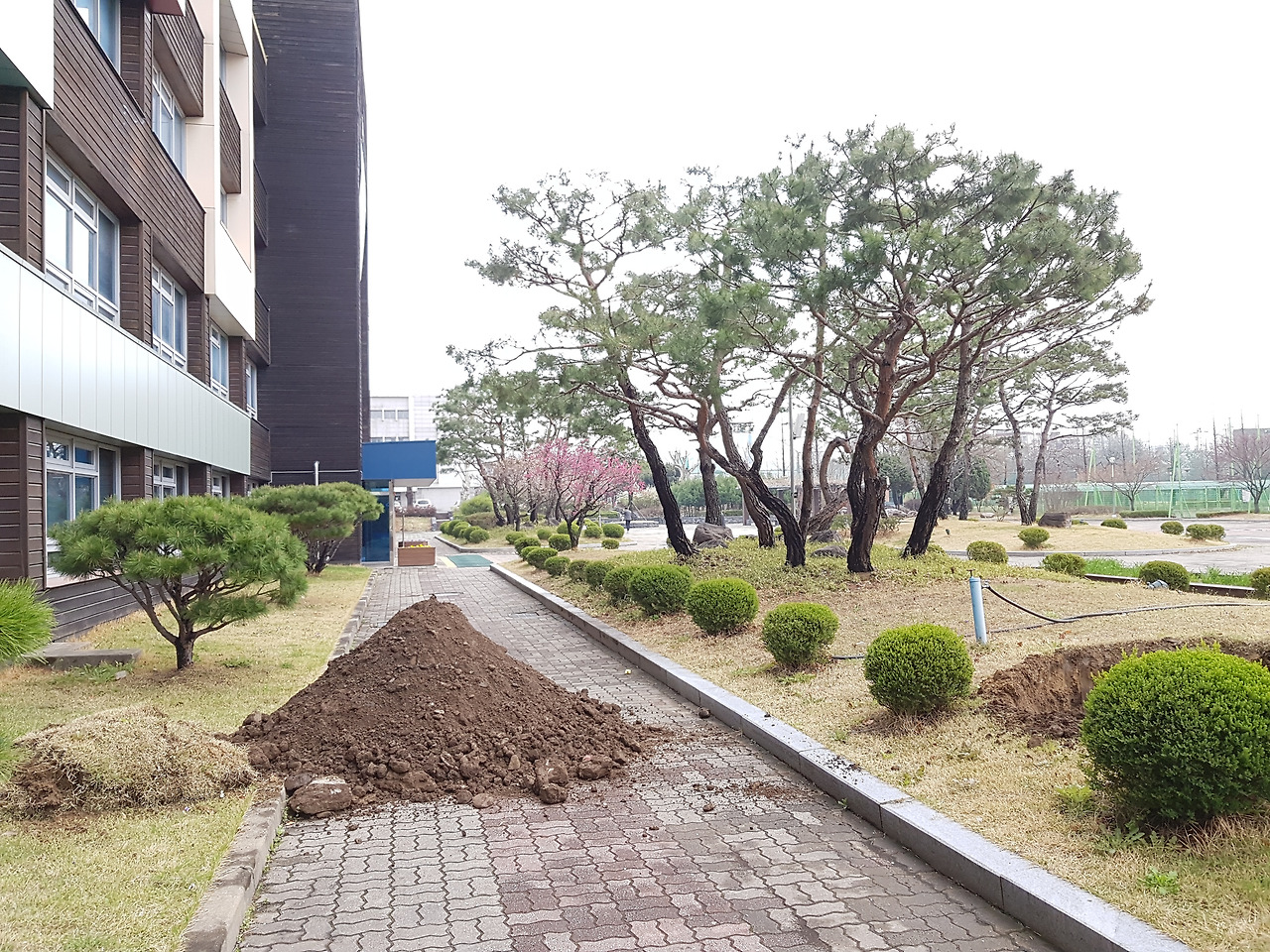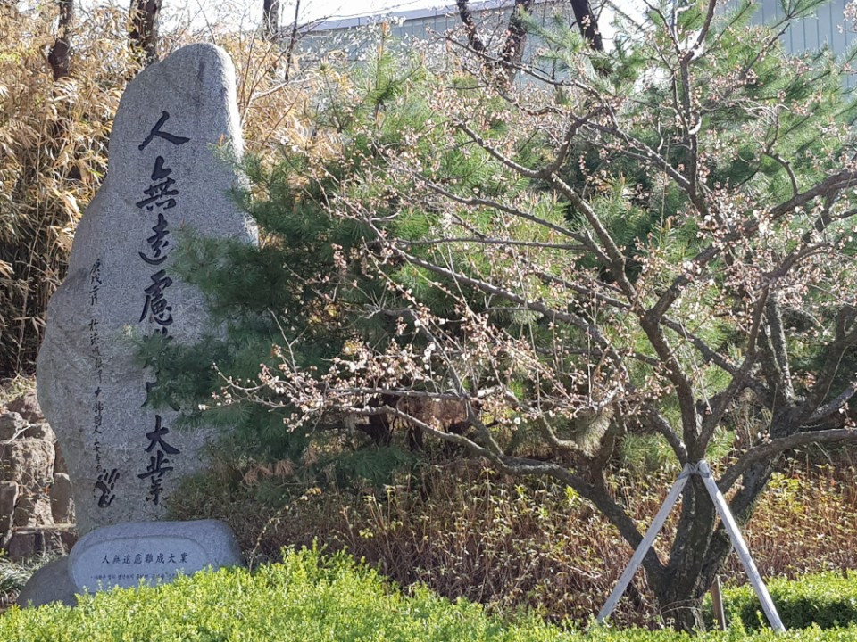 제 자리에 면목을 세운다. 그동안의 면구스러움을 씻는다. 기꾸지 농고에서 와룡매를 접목 번식하여 심긴 지 27년 만이다. 백매 1주는 2014년에 본관 전면으로 식재되었고, 이제 2018년이 되어서야 한조체육관 앞에 심어진 홍매를 옮기게 되었다. 그것도 반토막나무가 되어서 돌아온다. 한때 본교 씨름선수들의 훈련장이었던 곳이다. 그곳에 식당을 짓고 있다. 수원 화성을 닮은 디자인이다. 올해는 홍매의 활력을 되찾아야 한다. 창덕궁 선정전의 400년 와룡매가 그 후 일본에 심겨, 다시 400년 후에 남산 안중근 기념관에 1999년, 요란하게 환국식을 하며 식재되었다. 그보다 8년이나 빠르게 식재된 수원농생고의 와룡매 자목이 이르면 내년쯤에 활짝 만개하기를 기대한다. 두 곳 다 홍매가 몸살이다. 쾌유된 활력으로 내년을 맞이할 수 있어야겠다.