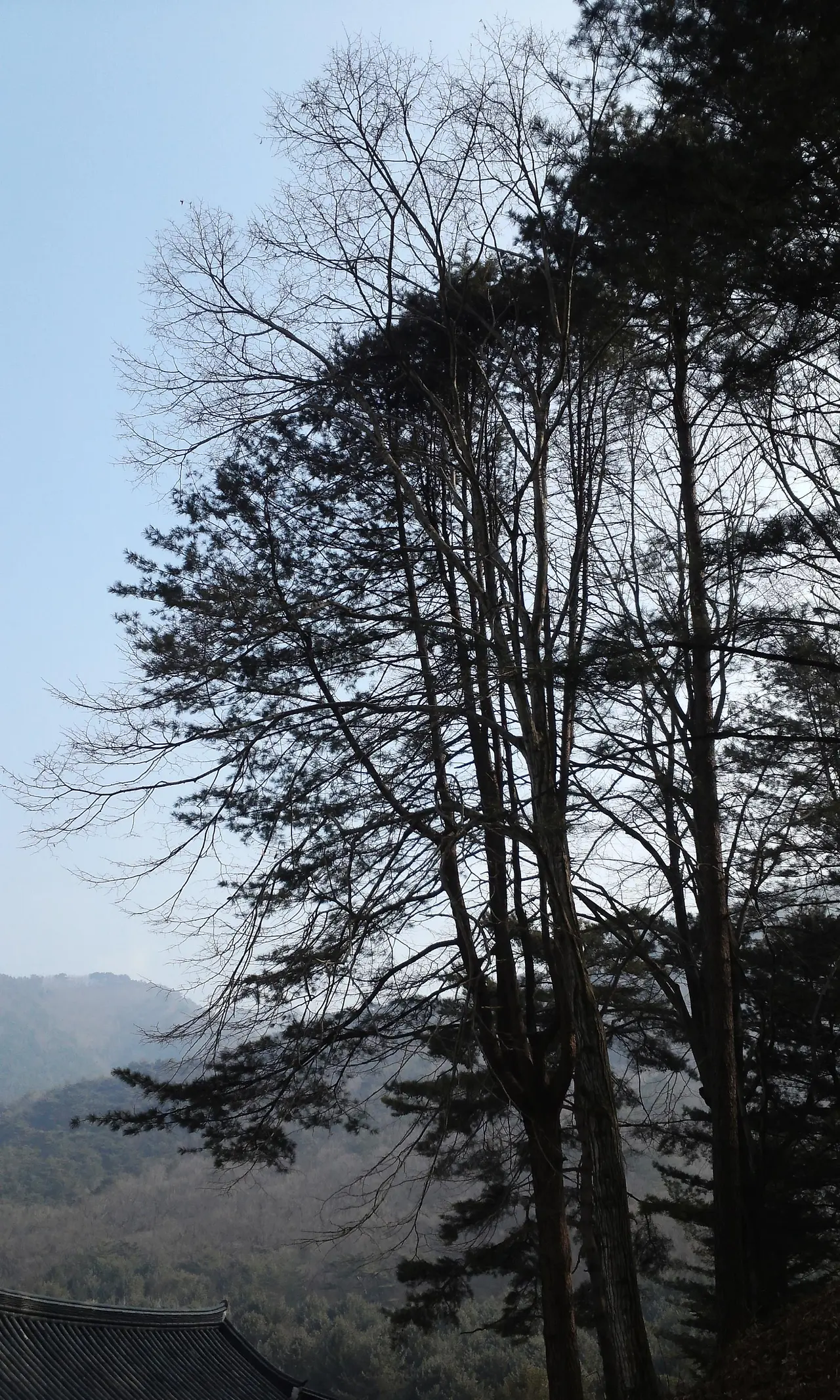 대웅전을 들렸다 왼쪽 뒤편으로 오르다 보면 한적한 공간에 그 단아한 모습으로 주변을 감싸던 나무였다. 그러나 그 나무는 보이지 않고 한쪽 산기슭에 잘 자라고 있는 다른 찰피나무를 보았다. 다른 나무들과 섞여서 자라는 것으로 보아, 예전에 보았던 늠름한 찰피나무는 아니었다. 잎이 없으니 주변에서 찰피나무 열매를 주웠다. 한참을 주우니 꽤 양이 염주를 매달만큼 되었다. 대웅전을 바라보고 왼편 산기슭에 소나무와 섞여 자라고 있다.
