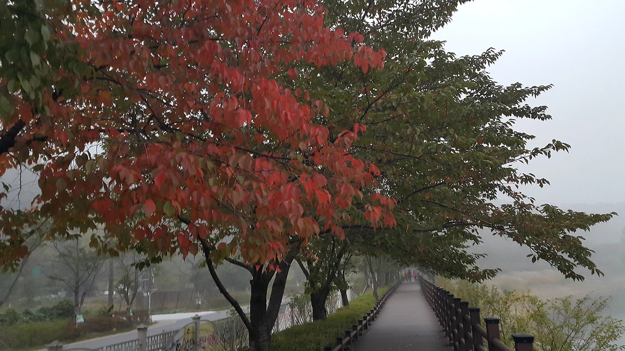 자연에서 나무가 계절을 살아가는 건 생명력이다. 그 안에 모든 철리가 담겼다. 어렸을 때, 어른들은 걷는 일도 잘 걸으라 했다, 뛸 때도 조심하라고. 하물며 현대를 사는 주행 본질의 삶에야 더 말할 게 있으랴. 그러니 변화하고 순응하며 계절을 달리 하는 나무에게 많은 것을 배워야 한다. 봄의 화려하고 기품 있는 꽃으로 주목받던 왕벚나무는 이내 버찌의 계절을 만나 밟히는 소리에 질리면서 평범한 일상의 나무로 되돌아간다. 언제 내가 그랬던가 싶게 얌전하고 의젓하게 뜨거운 여름을 이어간다. 이제 가을이 되면서 나무를 더욱 주목하게 된다. 나무에게서 배우는 계절의 순응이 훌륭하고 귀중하다고나 할까. 왕벚나무의 가을철 붉은 단풍은 다른 나무들보다 훨씬 빠르게 진행한다. 다른 나무들보다 추위에 민감한 것이 분명하다. 추위에 대처하는 시스템이 발달되었다고 볼 수 있겠다. 왕벚나무 물들기 시작하면서 가을이 왔음을 절감하게 된다. 이제 단풍이 늦은 나무들도 서서히 가을맞이에 몰입하고 있다.