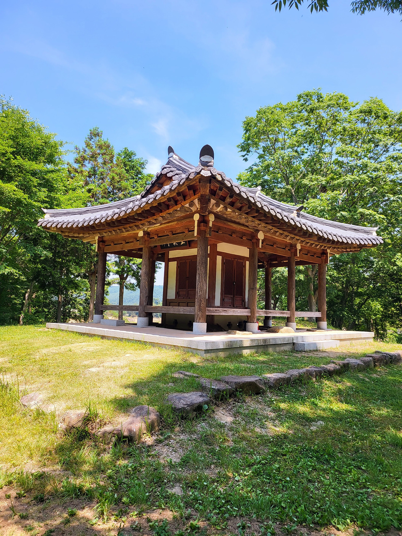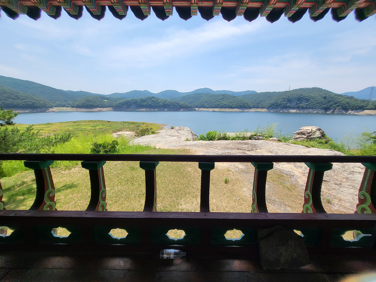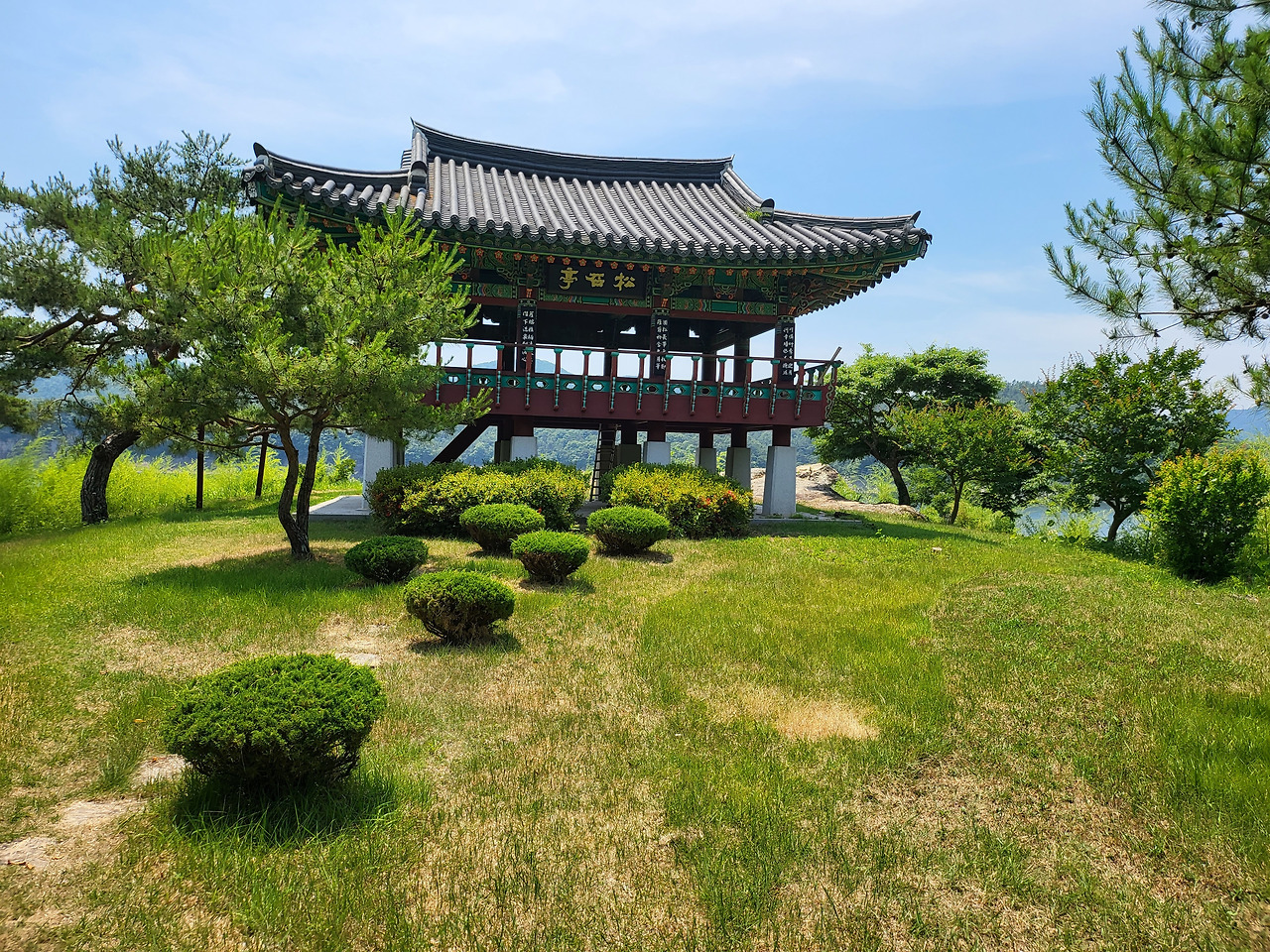 이번에는 문중 관계자와 동행하였기에 손쉬운 출입이 가능하다. 산을 휘돌아 임도를 따라 강과 절벽이 연출하는 풍광에 빠져든다. 더군다나 전망대에 이르러 올라서면 가슴이 시원하게 뚫린다. 기막힌 풍광을 만난다. 수몰로 잃은 마을 사람을 위한 망향정 일대에 이르면 숙연해진다. 누군가의 추억과 아픔 그리움이 가득하다. 잘 관리되고 있는 망향정에서 호안으로 더 내려가면 동북댐 수몰로 현재의 위치로 옮겨진 망미정(望美亭)을 만난다. 망미정 측면에 김대중(金大中, 1924~2009) 대통령의 글씨가 걸린 현판이 있다. 이곳은 일찌감치 시인 묵객들이 일부러 찾던 명소이다. 주고받은 시문만 해도 장강대하이다. 특히 망미정의 운치는 소박하면서 유현하다. 보이지 않는 그윽한 분위기에 이끌린다. 끝 모를 고요함과 구름 위에 뜬 듯 무중력의 아득함이 주변을 맴돈다. 오랜만에 세속을 씻어내는 기감(氣感)이다.