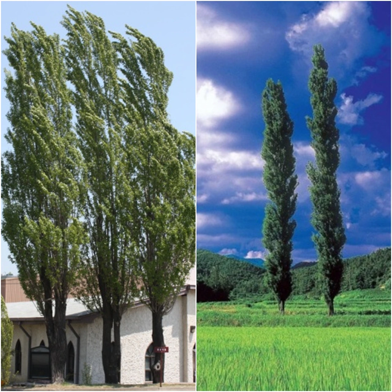 포플러 종류에 속하는 것들이다. 미루나무, 양버들, 이태리포플러가 그렇다. 미루나무는 수형이 다소 넓게 퍼진다. 양버들은 수형이 잘 묶어진 빗자루처럼 뻗어 올라간다. 이태리포플러는 미루나무와 양버들의 중간 성질로 가지가 뻗어 나간다.