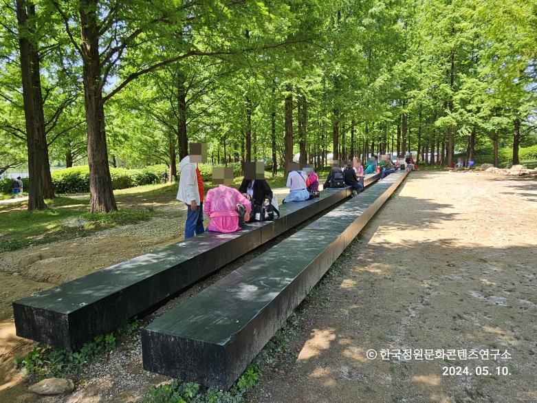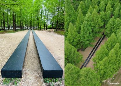 탄소 벤치와 메타세쿼이아 -탄소를 흡수하던 목재가 정원으로 자원 순환(시진 : 라펜트)