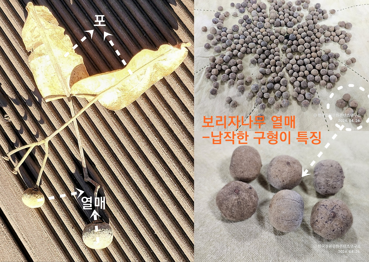 찰피나무는 보리자나무(Tilia miqueliana Maxim.), 염주나무(Tilia mandshurica Rupr. & Maxim. var. megaphylla (Nakai) Liou & A.J.Li)와 외형상으로 비슷하다. 열매로 염주를 만들 수 있는 나무들이다. 단정하고 우아한 수형과 염주를 만들 수 있는 특성이 서로 비슷하여 이들 모두를 사찰에서는 ‘염주나무 또는 ’보리수나무‘’라고 부를 가능성이 있다. 실제로 속리산 법주사 대웅보전 앞의 나무는 찰피나무에 비해 잎이 다소 좁고 열매가 납작한 구형이어서 보리자나무로 동정한다. 과거에는 찰피나무라고도 하였으나 찰피나무의 열매는 난형으로 5줄의 희미한 능각이 비교적 뚜렷한 편이다. 사찰에서 염주를 만들 수 있는 나무를 식재하는 것은 지금과 달리 자급과 자족의 ‘사찰 경제’에서 비롯한다. 의식주를 자체 해결하였다. 토목과 조경·건축을 비롯한 건설 관련 기술승이 존재하였다. 자체적인 품셈법으로 물량을 산출하고 자재 공급이 가능하도록 수급을 조치하였을 것이다. 경전에만 도가 있는 게 아니라 몸을 쓰는 기술에도 도가 있음을 퍼뜩 깨닫는 진심의 시대였다.