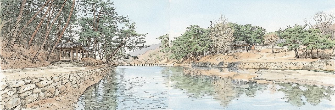 영주 소수서원 죽계원림 - 청풍정청풍대(담채).jpeg <광풍대와 광풍정>