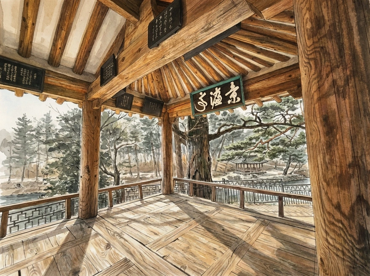 서원 공간은 크게 세 개의 골격으로 공간을 나눈다. 책 읽는 소리가 담장을 가득 메우는 강학 공간, 스승의 뜻을 기리며 옷깃을 여미는 제향 공간, 산수 자연에서 쉼과 사유를 병행하는 유식 공간이 그것이다. 유식(遊息) 공간은 단순히 노닐며 어슬렁거리는 유유자적한 장소가 아니다. 오히려 학습한 지혜가 깊숙이 스며들어 삶의 철학으로 체화되는 곳이다. 산수를 거닐며 되새기고 고요한 바람 소리에 귀기울이는 성찰의 공간이다. 맑게 비워진 정신을 다시 채우는 이곳은, 세상의 번잡함을 벗어나 ‘쉼’과 ‘감성’이 조화되는 영혼의 안식처이다. 유학이 지향하는 ‘즐거운 배움’이 자연의 품 안에서 비로소 완성되는 지점이 바로 여기이다.