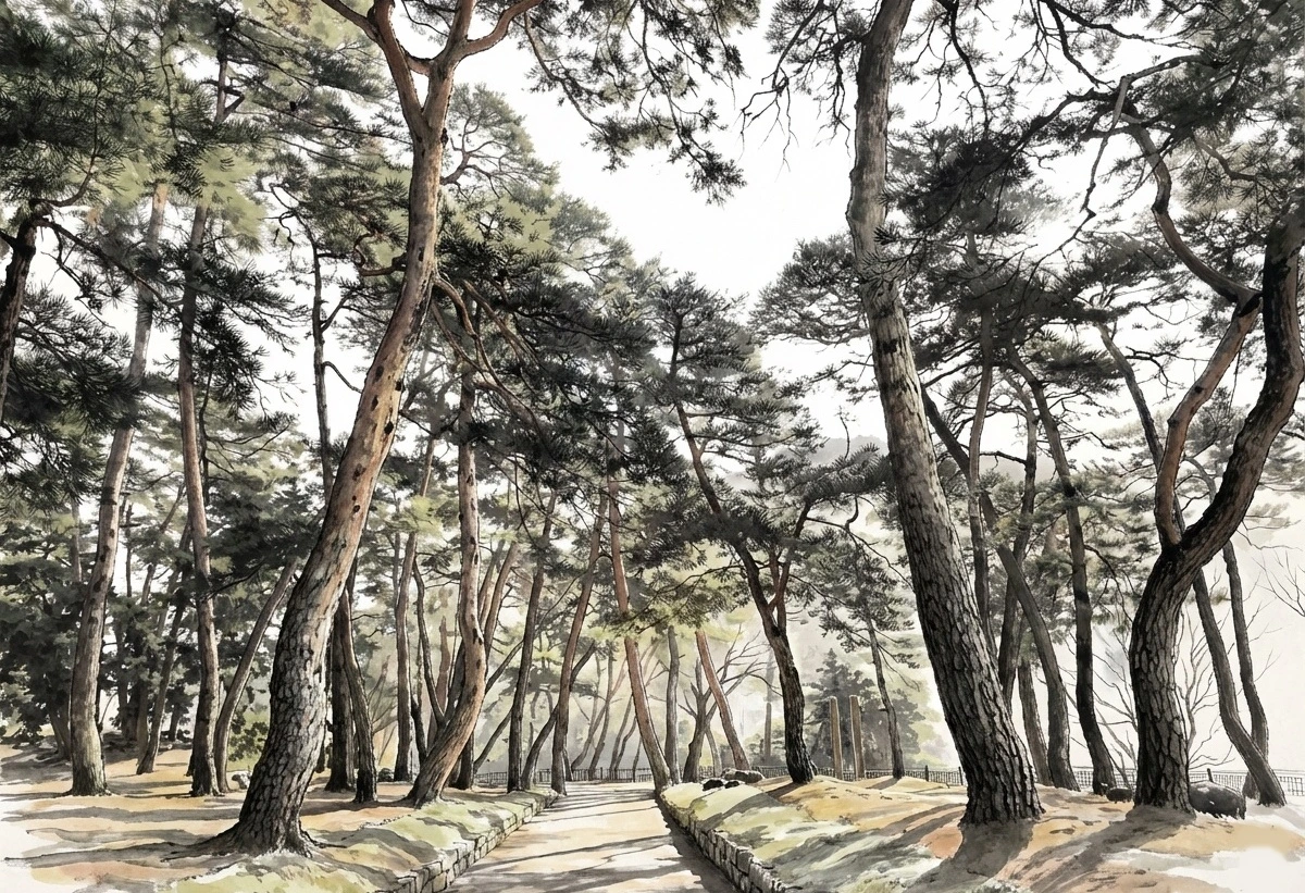 <소수서원 학자수림> 진입 공간과 서원의 주변의 기운을 보완하는 울창한 푸르름은 경건한 마음을 정갈하게 하여 주는 전이 공간의 역할을 제대로 발휘한다. (2025.02.28.)