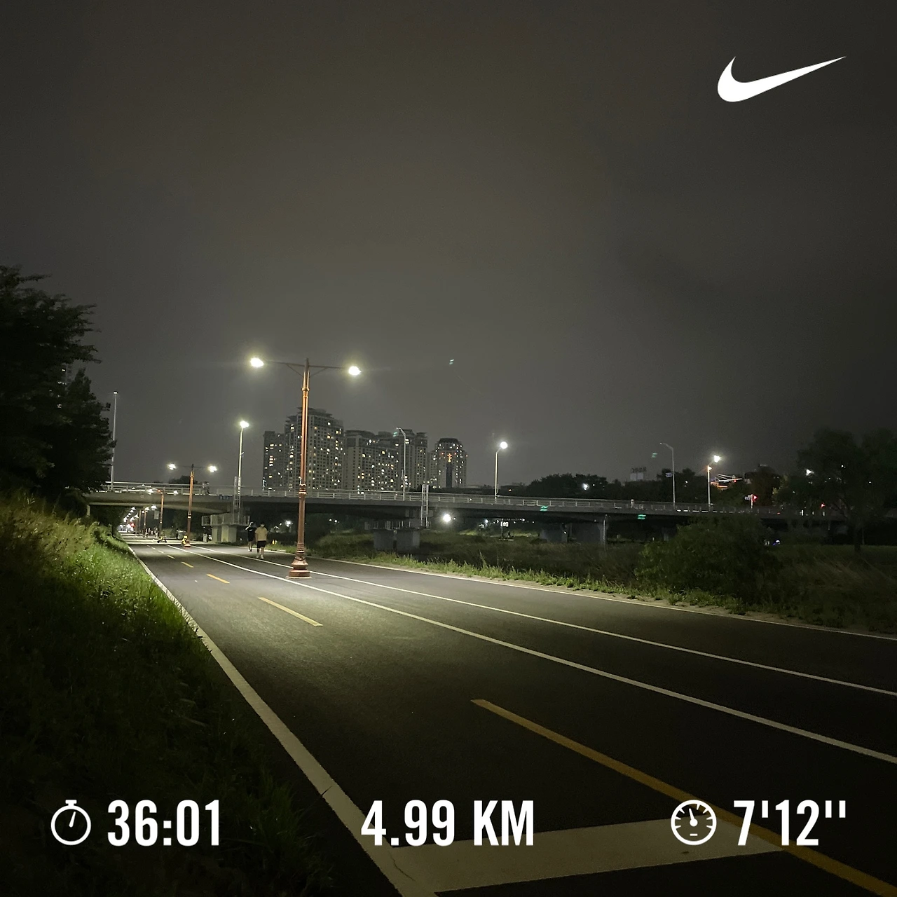 저녁을 먹은 뒤 9시에 우리는 정자역에 도착했다. 탄천이 바로 옆에 있어서 물 냄새가 비릿하게 났지만, 물 냄새에 대한 불만을 느끼는 건 뛰기 시작한 지 2km 구간까지 누릴 수 있는 여유였고, 그 이후부터 물 냄새는커녕 주변 경관도 보지 못 했던 것 같다. 3km쯤 도달해 다시 턴해서 돌아오는데 이상하게 평지인데도 스승님을 따라가는 것이 벅찼다. 점점 간격이 벌어지니 벌어진 간격을 또 좁혀야지 싶어서 더 뛰고, 또 그 속도를 유지하는 게 힘들어졌다. 뭔가 이상했다. 나의 속도는 그대로인데 점점 멀어지는 스승님의 등.. 그러다 나란히 뛰고 있는데 갑자기 스승님의 속도가 빨라지는 거다..?
