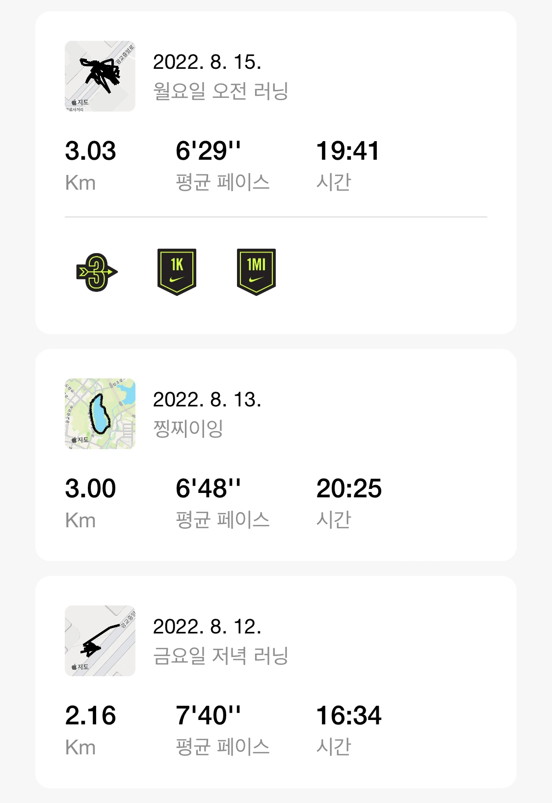 5km의 벽을 넘고 6km 도전해보자는 스승님의 말에 지난주 광복절 연휴에는 혼자서 헬스장과 호수공원에서 3km를 3일 연달아 뛰어보았다. 헬스장엔 에어컨 바람도 나오니 충분히 뛸 수 있겠지? 생각했으나.. 마스크를 쓰고 뛰어야 된다는 건 생각하지 못했다. 우씨
