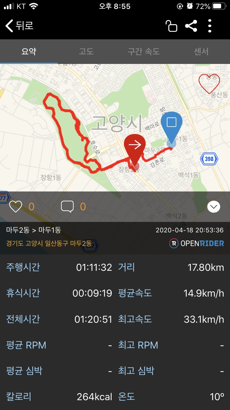 운동도 심하면 병 된다고 잠깐 벤치에 앉아 숨을 골랐다. 손목과 햄스트링 스트레칭도 해주며 다시 한번 생각해봤다. 그냥 바퀴만 굴리는 운동인데 이렇게 뿌듯할 일인가?(두 바퀴 돌아서 뿌듯했음) 그리고 하얗게 빛나는 내 자전거가 예뻐서 또 한참을 바라봤다. 그리곤 집에 돌아와서 침대에 누우려는데 이번엔 엉덩이가 아프다. 뭐지..? 자전거의 매력은 통증인가?..