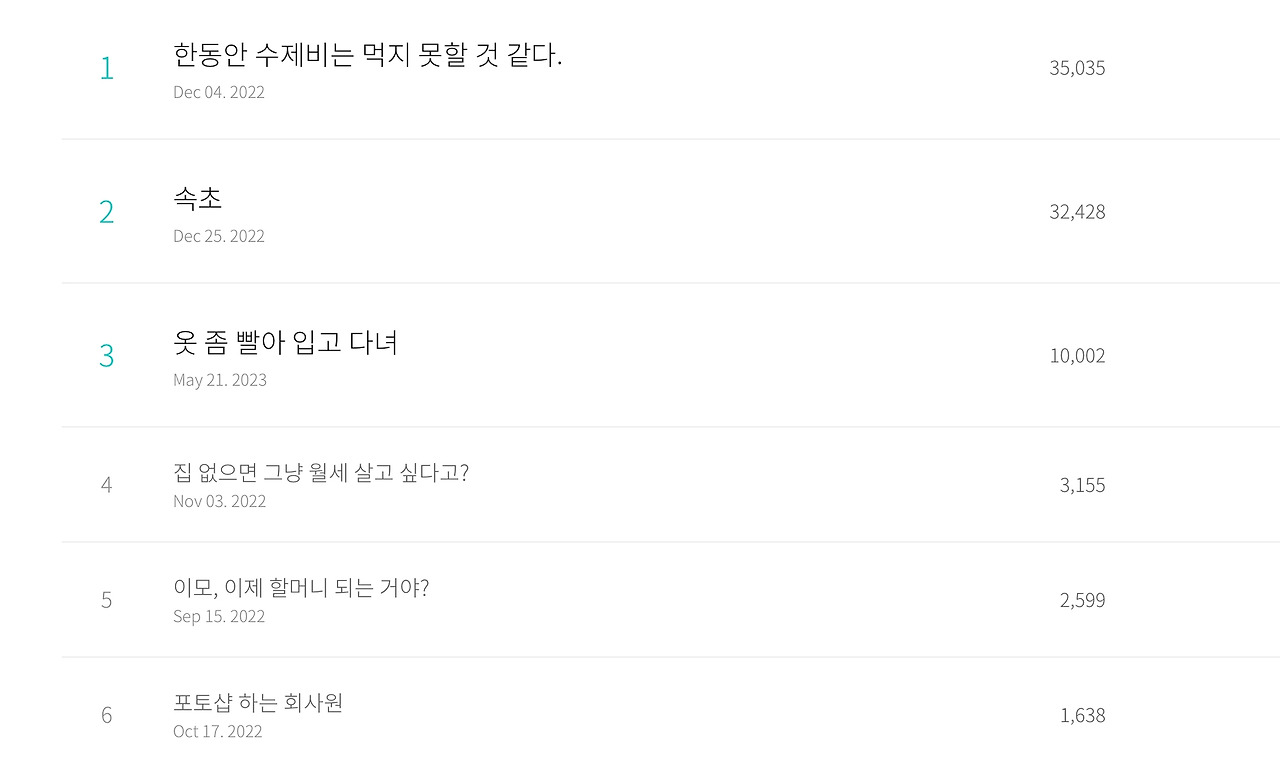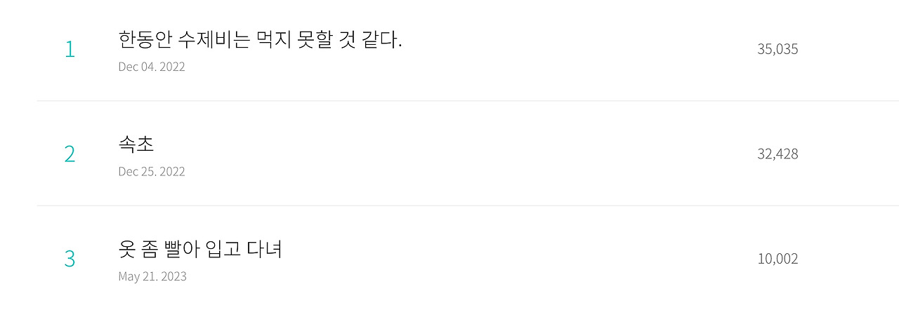 역시 세 편 모두 DAUM 메인에 노출되면서 유입이 많았던 글이었습니다. 그럴 때는 화면을 캡처해 놓기도 하고, 새로고침을 하면서 조회수 올라가는 것을 계속 확인했던 기억이 나네요.