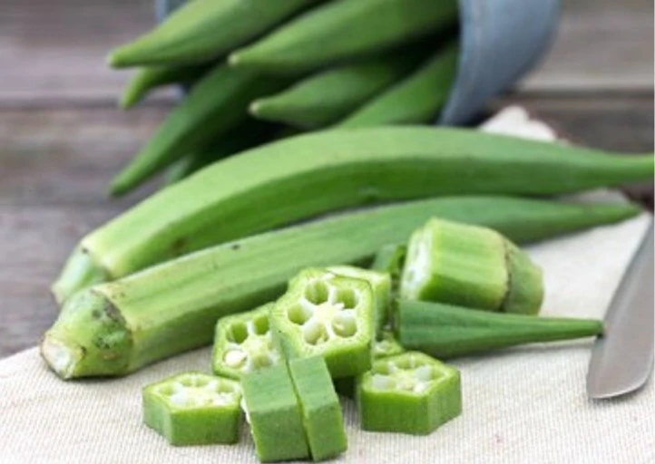 오크라의 초록빛은 쪽빛 초록이다. 이 쪽빛 초록이 너무 예뻐서 이번에는 그 빛깔을 간직할 요리 법을 궁리해 보았다. 그래서 지난번과는 달리 썰어서 살짝 볶아 스파게티에 넣어 보기로 했다. 그런데 오크라를 자르는 순간 너무 놀라서 한참을 보았다. 생각지도 못하게 자른 단면이 너무 예쁜 것이다. 칼로 자르지 않고 통으로 데쳐만 먹었을 땐 몰랐었는데 단면을 자르고 보니 눈꽃 송이처럼 예쁜 오각형 꽃 모양이다. 생각지도 못한 오크라의 아름다움에 매혹되어 오크라를 손에 모아 놓고 사진까지 찍어 두었다.