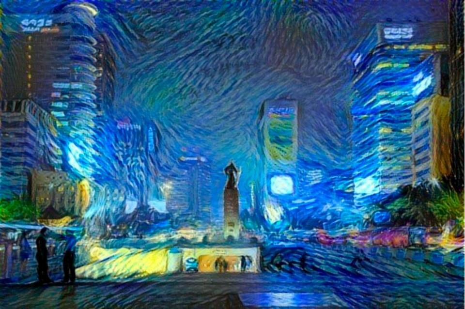 위 작품이 구글 딥드림이 광화문 광장을 그려낸 그림입니다. 딥 드림에 고흐의 화풍을 학습시킨 뒤 광화문을 그리게 하자 고흐의 화풍대로 그림을 그려낸 것입니다. 이처럼 구글은 인공지능 신경망 기술을 지속적으로 업그레이드하면서 하나의 신경망으로 30여가지 스타일의 화풍을 생성할 수 있는 프로세스를 구현해냈습니다.