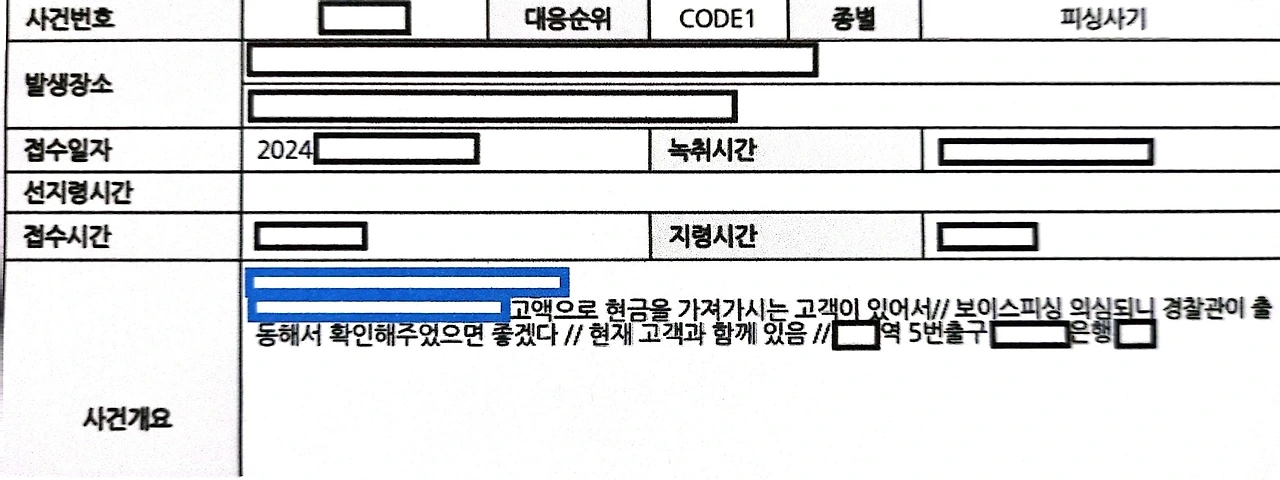 실제 은행 직원의 보이스피싱 의심 신고 내용