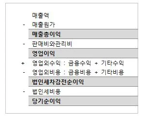 그다음으로 고민해볼 이익은 '법인세차감전순이익'이다. 만약 철수가 카페 한편에 다른 사람이 운영할 수 있도록 '꽃가게'를 대여해주고 임대료를 받는다면 해당 임대료는 영업외수익으로 기록해야 한다. 또한, 철수나 임 사장이 가게를 오픈하기 위해서 은행으로부터 차입을 받았다면, 이자를 지급해야 하는 데 해당 이자비용은 영업외비용으로 기록해야 한다. 즉, 정상적인 영업활동과 관계가 없거나 비정상적인 활동으로 인해 발생한 손익은 '영업외손익'으로 기록하게 된다. 영업외손익은 해당 사업의 지속가능성을 평가하거나 미래 수익성을 추정하는 데 방해가 되므로 자주 발생하는 것은 좋은 현상은 아니다. 이렇게 발생한 영업외손익을 영업이익에서 가감한 이익이 '법인세차감전이익'이다. 그리고 마지막으로 법인세비용을 차감하여 최종적으로 남는 이익을 '당기순이익'이라고 한다.