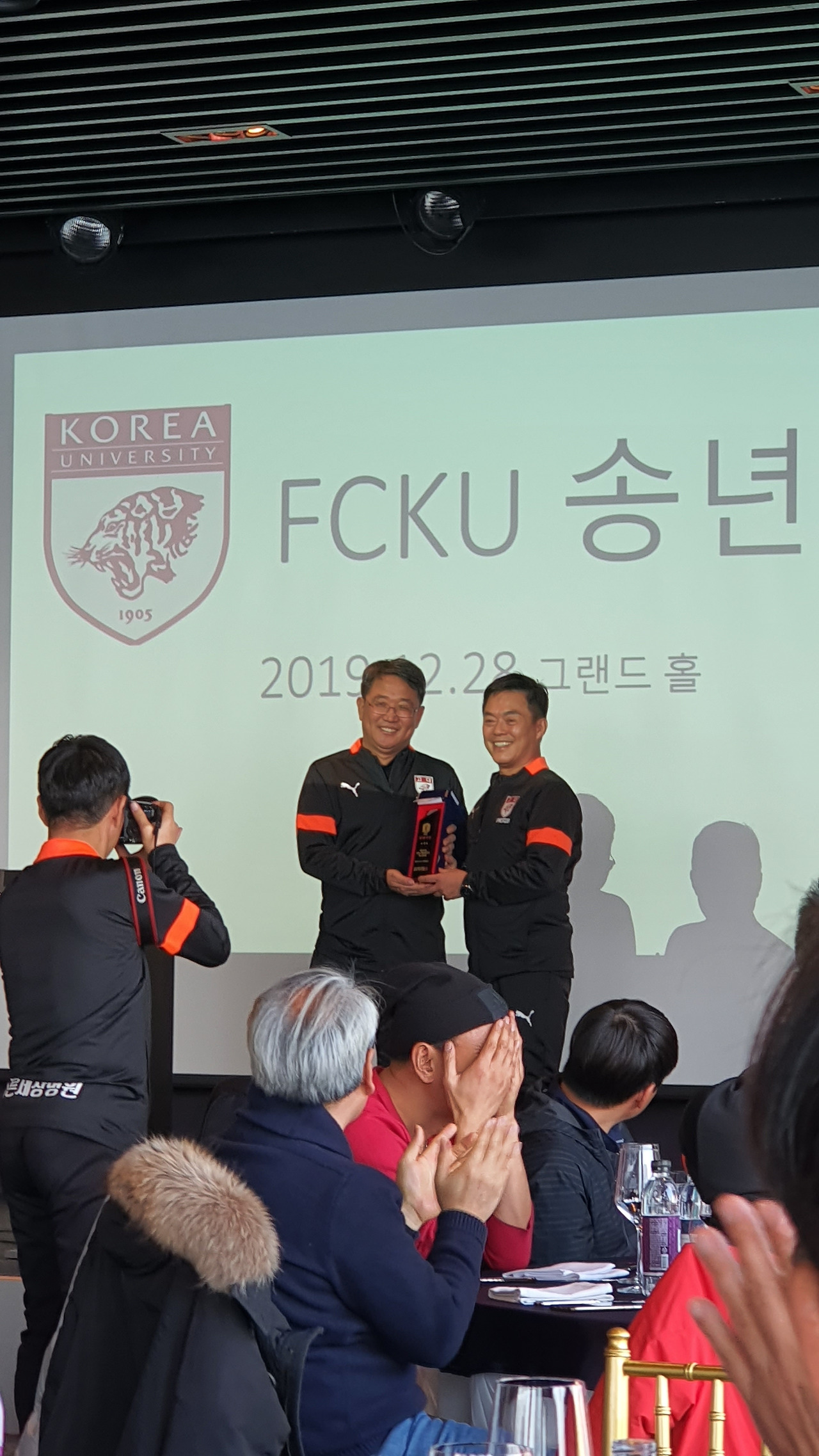 운영진이 모두의 예상을 깨고 두당 10만 원짜리를 통째로 빌린 것에는 이유가 있었다. 1년에 한 번뿐인데 이때라도 뱁새가 황새 한 번 따라가 보자는 것이었다. 다리가 찢어져도 할 수 없다. 점심 한 끼가 10만 원이라니! 내 1주일 식비였다. 송년회가 다 그렇듯이 정기총회를 겸한다. 가장 막내 학번인 나와 동기들은 잔심부름에 선배들 술 따라주느라 정신이 없었다. 12시부터 시작된 송년회에서 많은 시상식이 있었다. 회장단이 바뀌면서 운영진의 개각도 있었다. 개각의 폭은 넓었고 드디어 우리 학번들도 부총무에 둘이나 입성하는 쾌거를 올렸다. 나중에 살펴보니 70명 중 절반은 감투를 쓴 것 같았다. 부총무의 역할을 굳이 설명해주는 사회자의 설명에 모두 뻥 터졌다. 한 명은 물과 음료 당당 또 한 명은 축구 장비 담당이었다. 감투 하나만 씌워주면 1년 동안 자연스럽게 그 허드렛일을 해내는 것이 인간이다. 완장 하나면 채워주면 마을 전체를 쑥대밭으로 만들던 우리의 근현대사도 마찬가지였다.