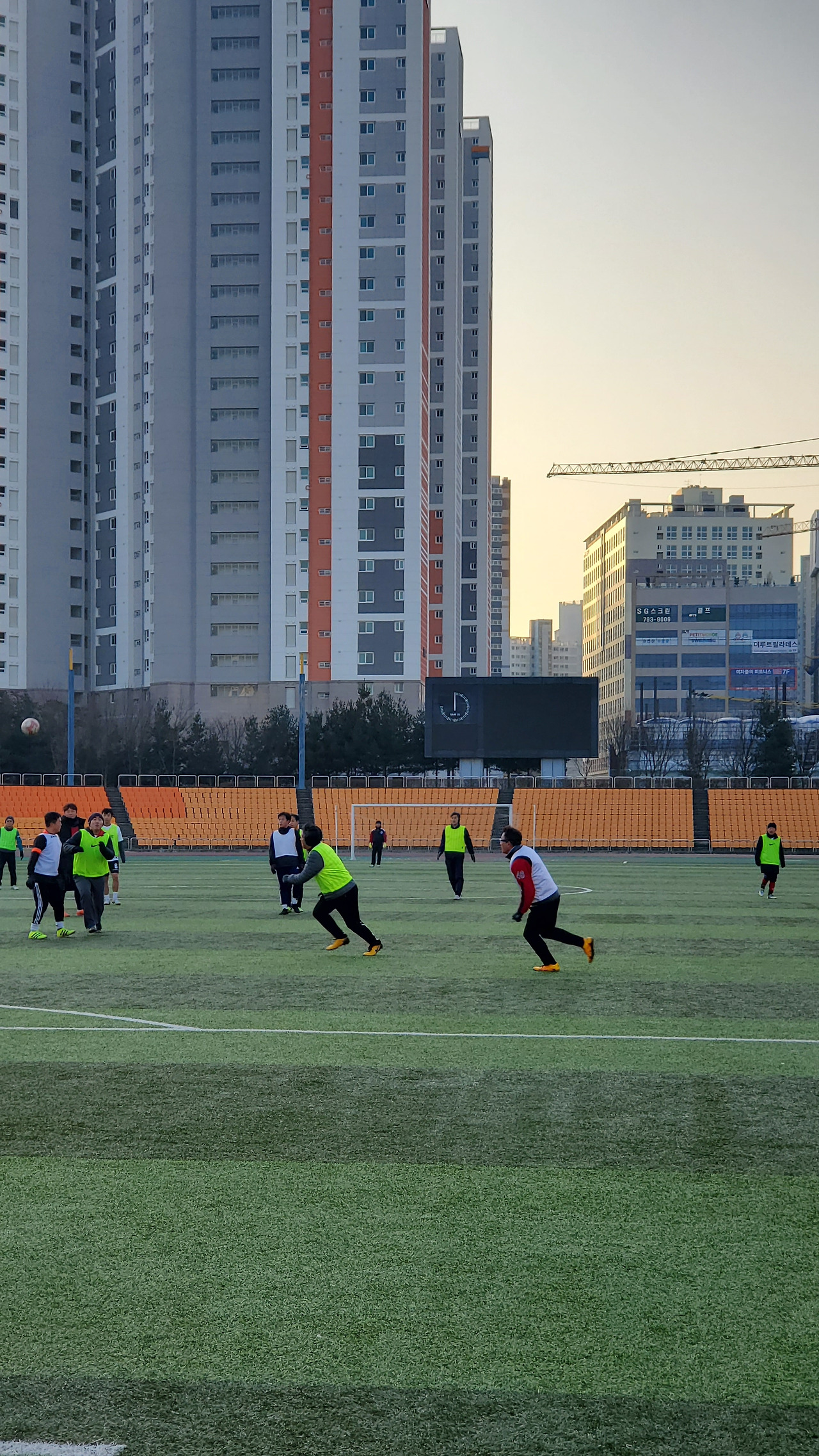 조기축구가 열리는 하남 종합운동장 주경기장까지는 집에서 딱 50킬로 미터다. 다행히 올림픽 도로가 막히지 않아서 40분 만에 하남에 도착하였다. 그 추운 겨울 아침에 공 하나를 두고 아들부터 아버지까지 몰려다닌다. 새벽 6시 반부터 나와서 몸을 풀고 7시부터 10시까지 그 짓거리를 하고 있다. 외계인이 보면 도무지 이해하지 못할 장면 가운데 하나다. 동그란 공하나를 두고 22명이 쫓아다닌다. 3명의 심판은 인간들이 동그란 것을 잘 쫓아다니는지 감시한다. 때로는 카드를 내밀어 인간들을 혼 내키거나 운동장에서 쫓아내기도 한다. 월드컵이란 걸 치르면서 지구 전체가 들썩거리기도 한다. 지구에 사는 인간들은 아무리 생각해봐도 단순하다. 언제든 점령해서 빼앗을 수 있을 것 같다. 동그란 공하나 만 던져주면 된다.