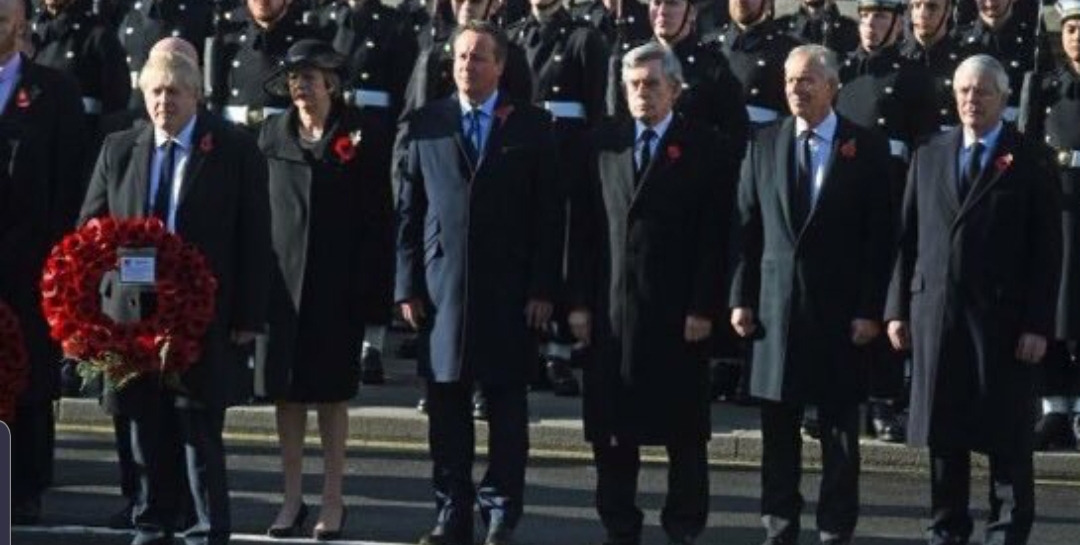 영국의 역대 총리들(좌로부터 보리스 존슨 현 총리, 테레사 메이, 데이비드 카메론, 고든 브라운, 토니 블레어, 존 메이저)