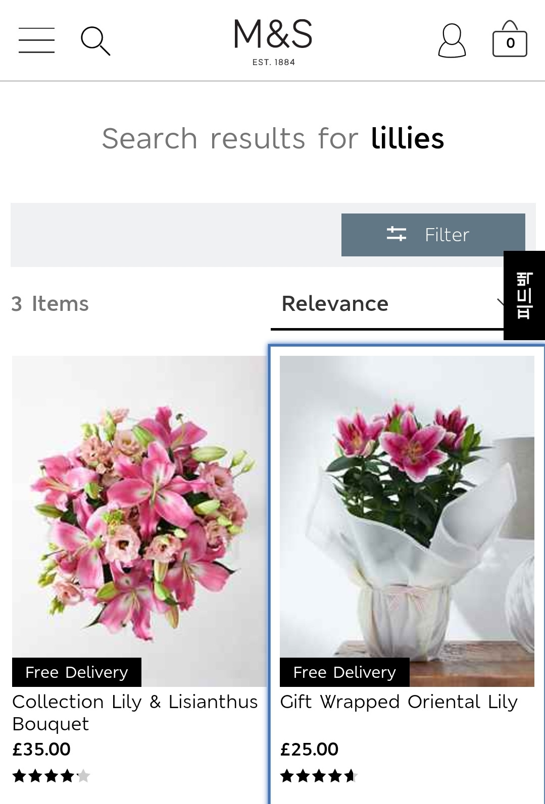 2020년 8월 23일 영국 M&S(Marks and Spencers)에서 판매 중인 홍백합