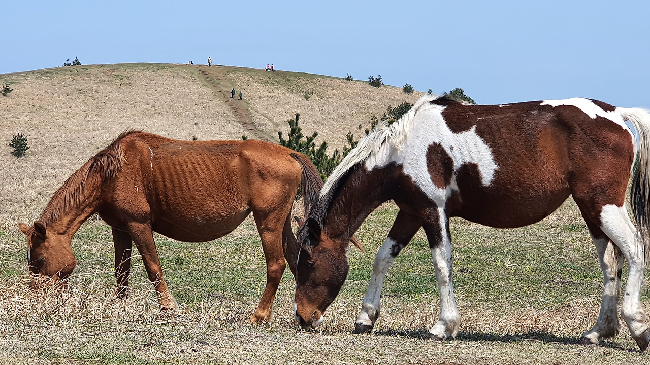제주의 아름다운 용눈이 오름, 말 커플들은 언제까지 저렇게 한가하게 풀을 뜯으며 살아갈 수 있을까!