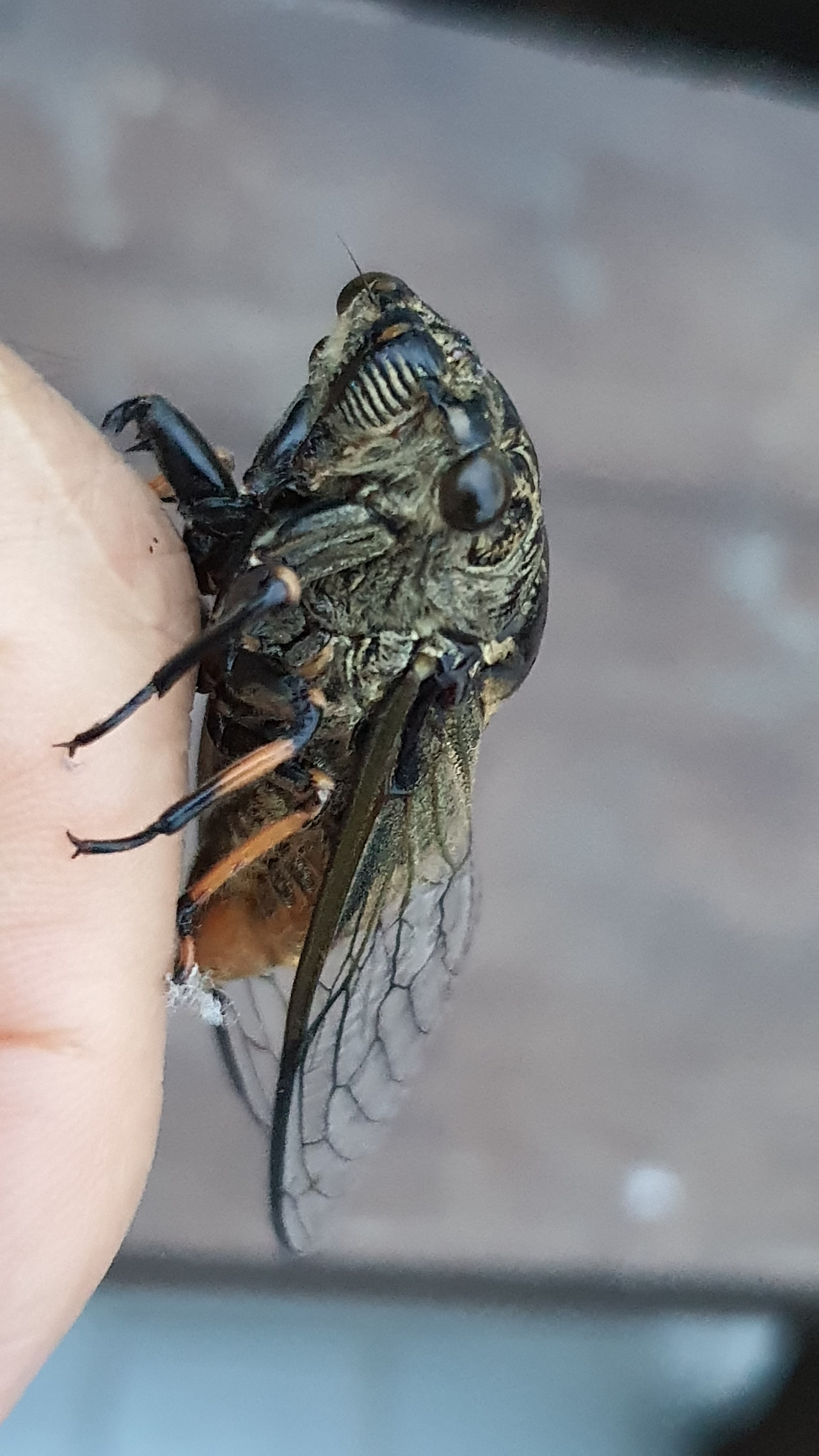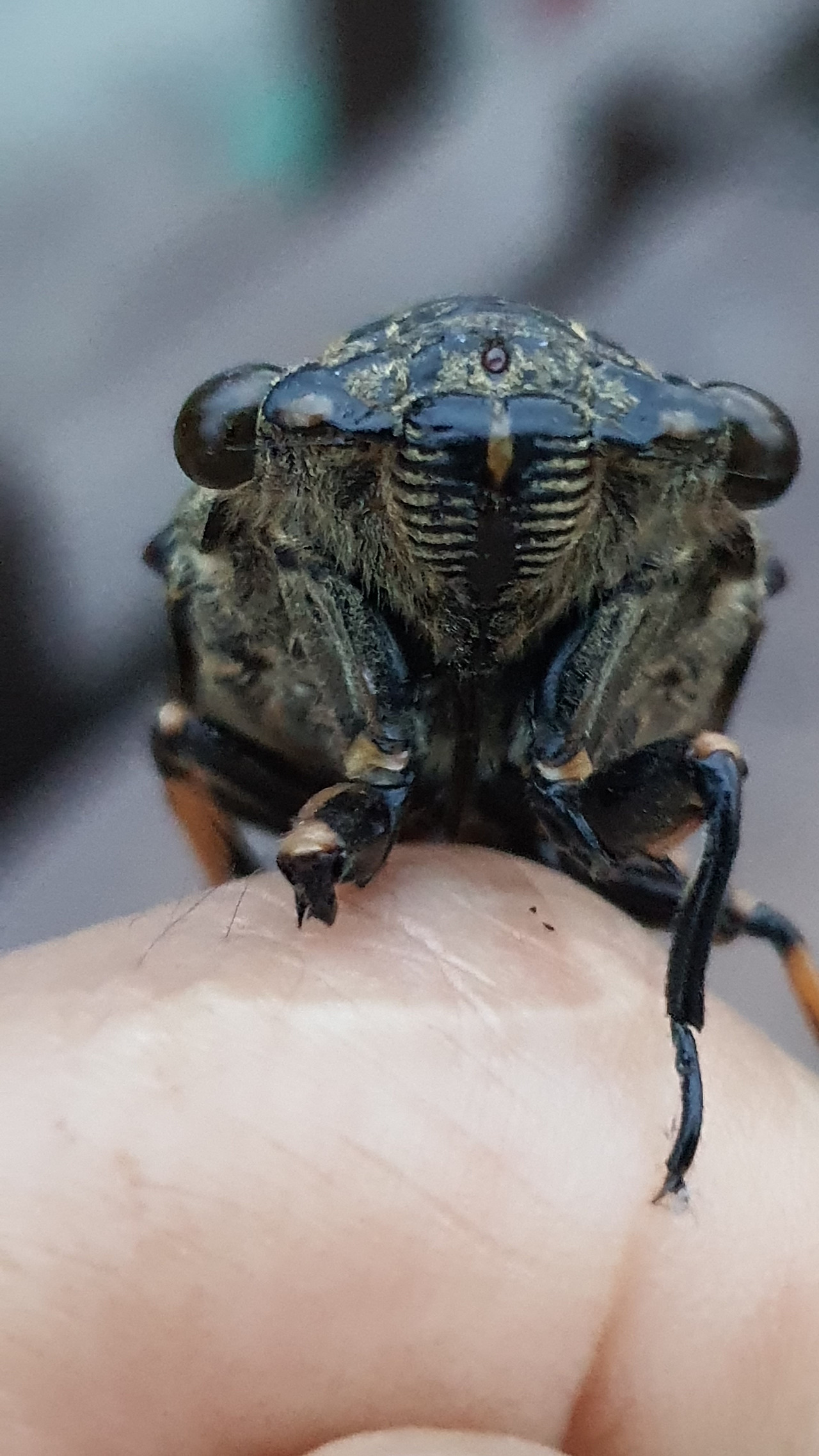 매미의 눈과 콧구멍과 입이 보이시나요? 매미의 잘 생긴 얼굴이랍니다.