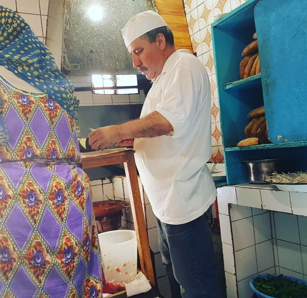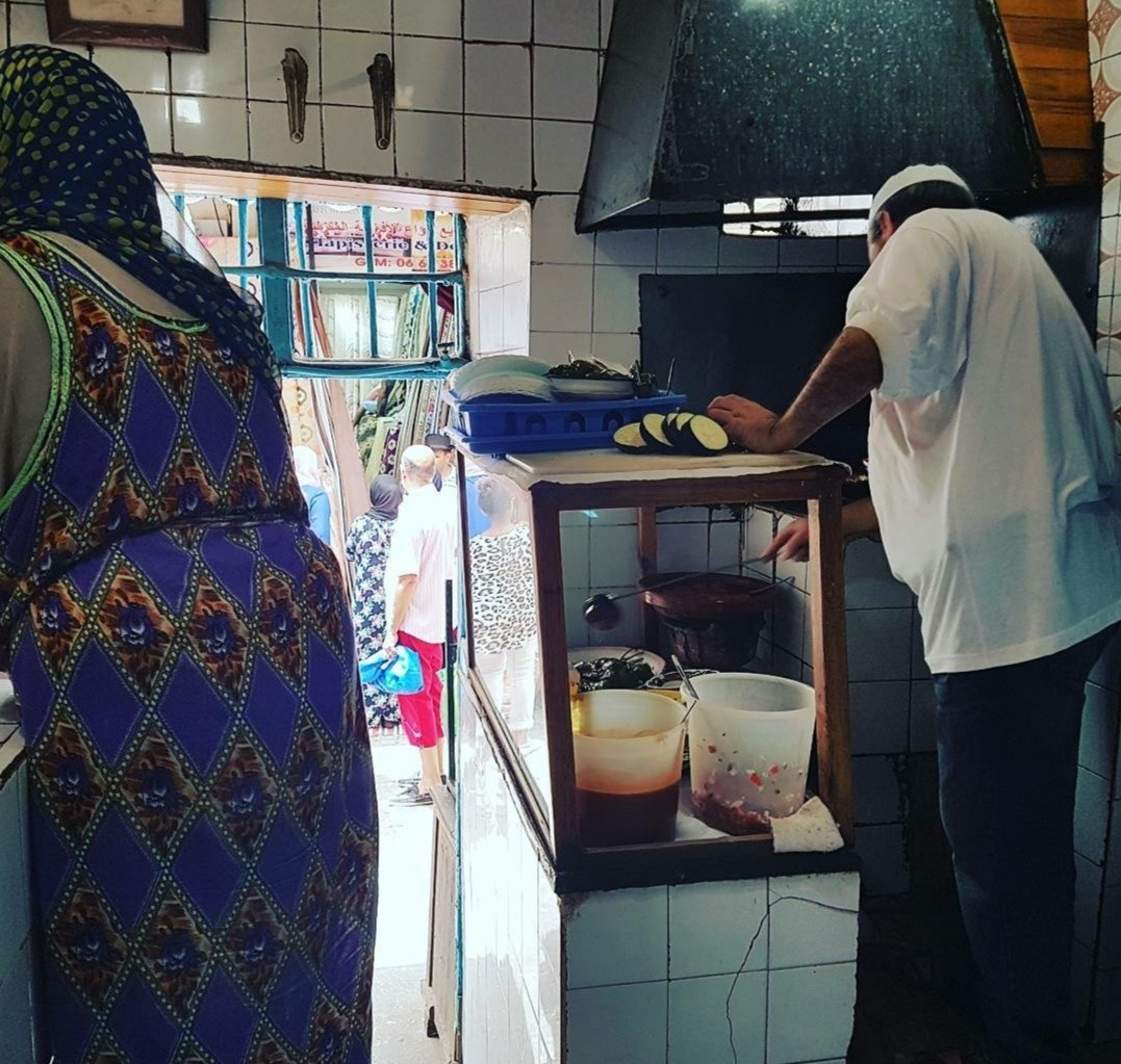 모로코 수도 라밧 메디나의 간판도 메뉴판도 출입문도 없는 식당 전경 모습이다. 먼지가 잔뜩 쌓인 벽돌로 만든 가파른 2개의 계단을 올라서야만 식당에 들어갈 수 있다.