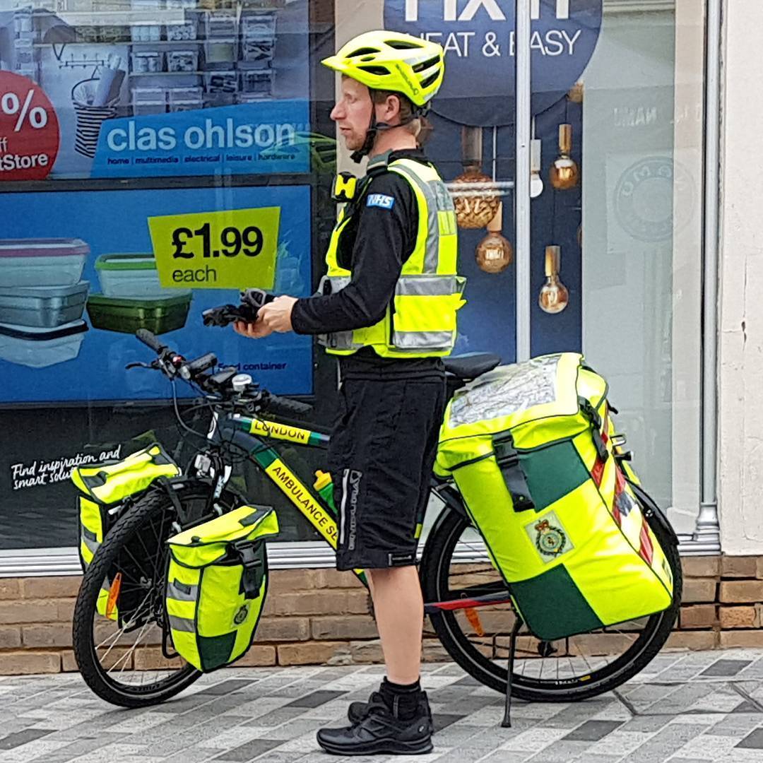 시내의 골목이나 광장에 대기 중인 자전거 엠뷸런스