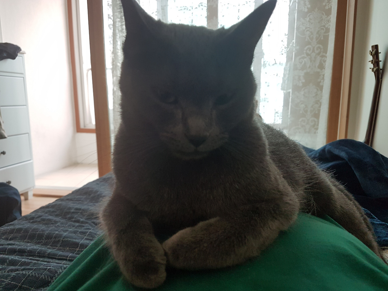 후배네 고양이 블루의 침대 활용법이다.