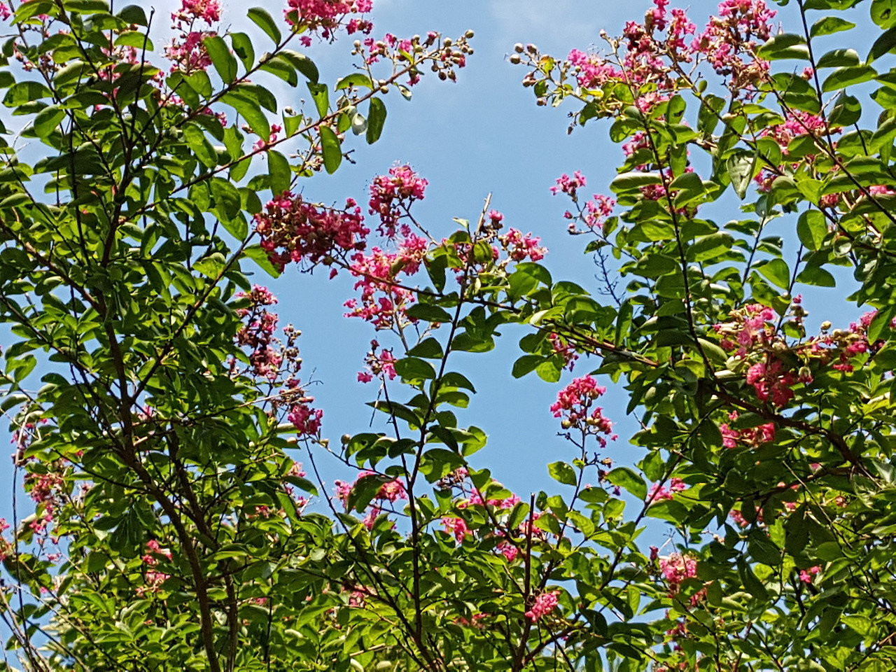 백일홍 사이로 이른 가을 하늘을 보았다.