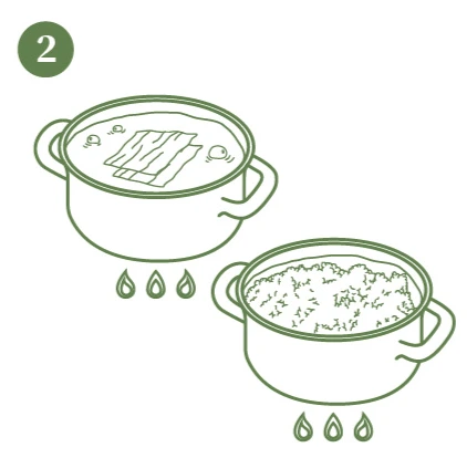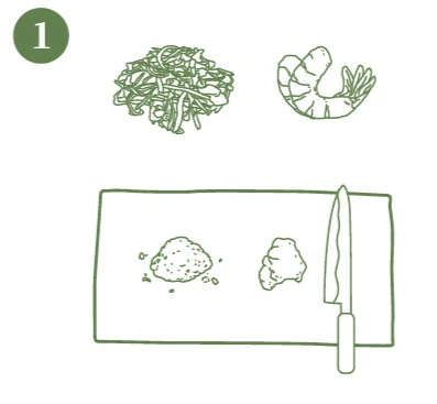 미나리 200g, 새우 4개, 물 2컵, 다시마 3장, 불린 쌀 1컵, 소금 약간