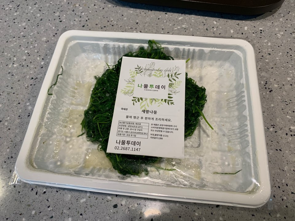 손질이 필요없기 때문에 나물 손질을 많이 해보지 않으신 분들께 추천드리는데요~ 나물투데이에서 데친 세발나물을 받아보신 후 바로 찬물에 헹궈주시기만 하면 요리를 위한 준비과정이 끝난답니다. 간편하쥬?