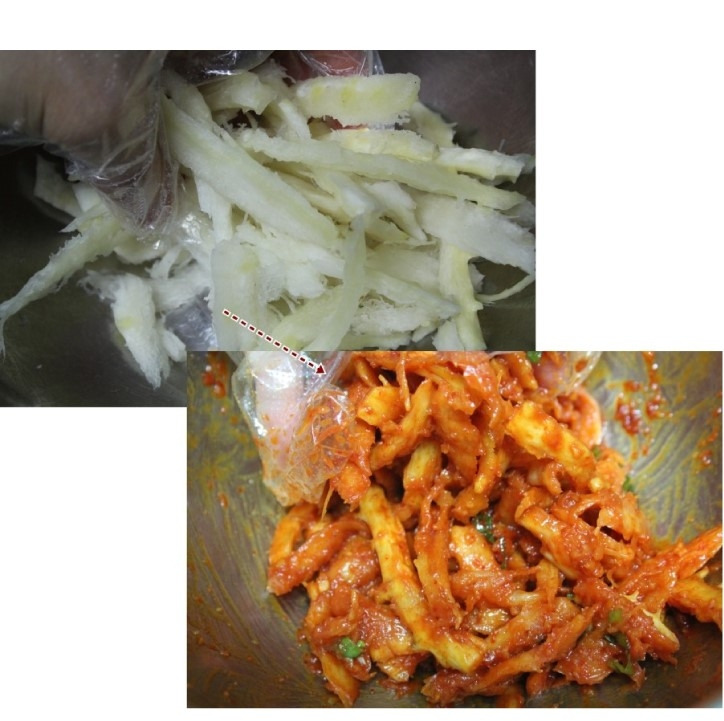 4. 더덕 고추장 무침 무치기