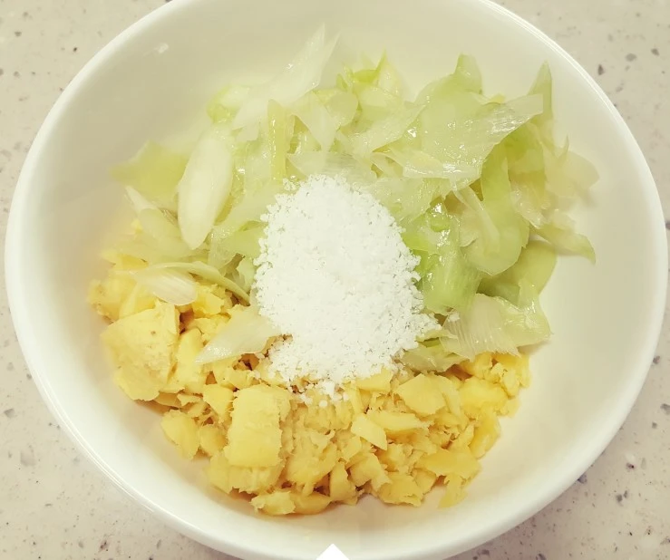 식용유 6T을 튀김온도까지 끓여준다. 빻아놓은 대파와 생강에 소금 1/2T을 넣고 달궈준 식용유를 부어준다.