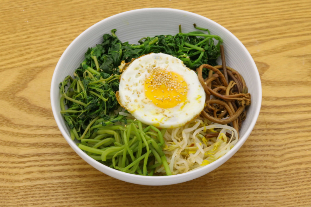 고소한 고기에 나물로 신선함을 더한 터치는 건강에도, 맞에도 이롭다.