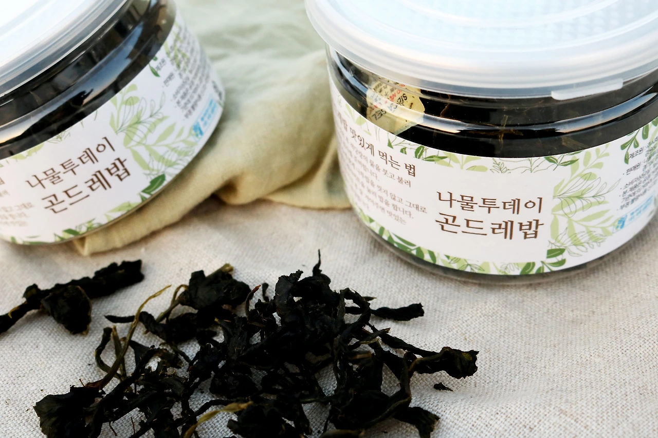 곤드레는 정식 명칭은 고려엉겅퀴이라고 한다. 산골짜기에서 제멋대로 자라 바람이 불면 줄기가 이리저리 흔들리는 모습이 술에 취한 사람 같다 하여 곤드레라고 재밌는 별명을 가진 나물이다. 식물성 단백질이 풍부할 뿐만 아니라 칼슘, 인, 철분도 많이 함유되어 뼈도 튼튼하게 해 주고 빈혈을 예방해준다고 한다. 전체적으로 고르게 녹갈색을 띤 것이 잘 건조되어 특유의 구수한 냄새가 나는데 내가 좋아하는 냄새가 이 구수한 곤드레 냄새다. 여기 있는 나물 투데이의 곤드레밥은 따로 손질할 필요 없이 밥솥에 함께 넣고 취사하면 바로 되기 때문에 너무 편하고 내가 제일 좋아하는 곤드레 나물밥이다.